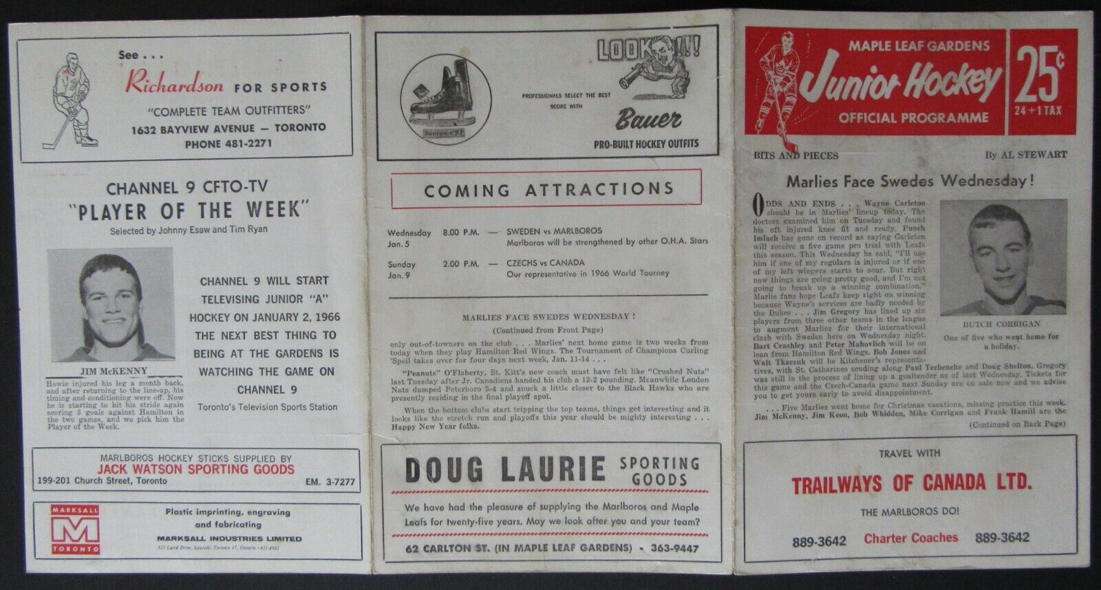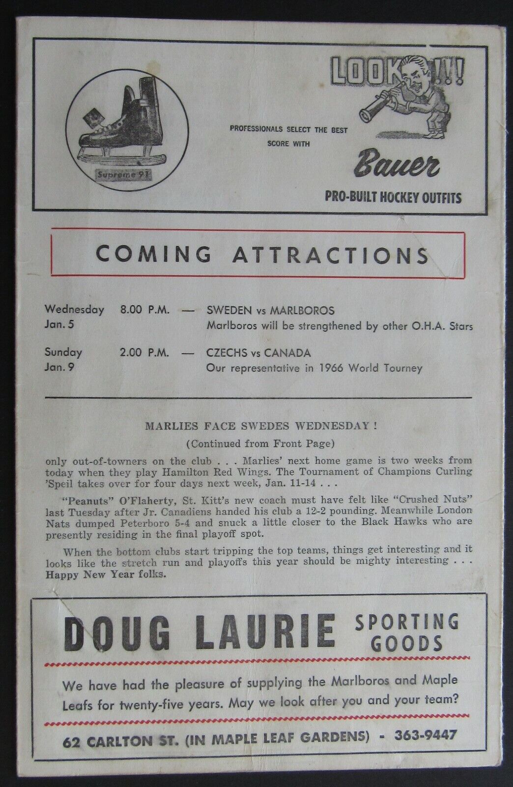- January 2, 1966 Junior A Hockey Program for game at the Maple Leaf Gardens in Toronto