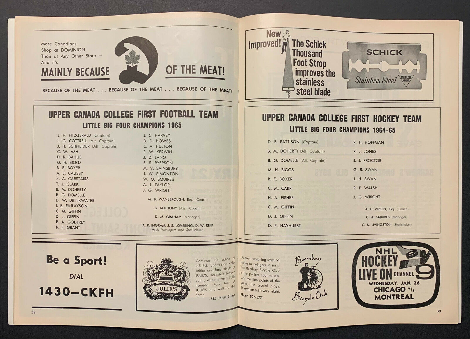 • Maple Leaf Gardens January 21, 1966 hockey program for Upper Canada College hockey game