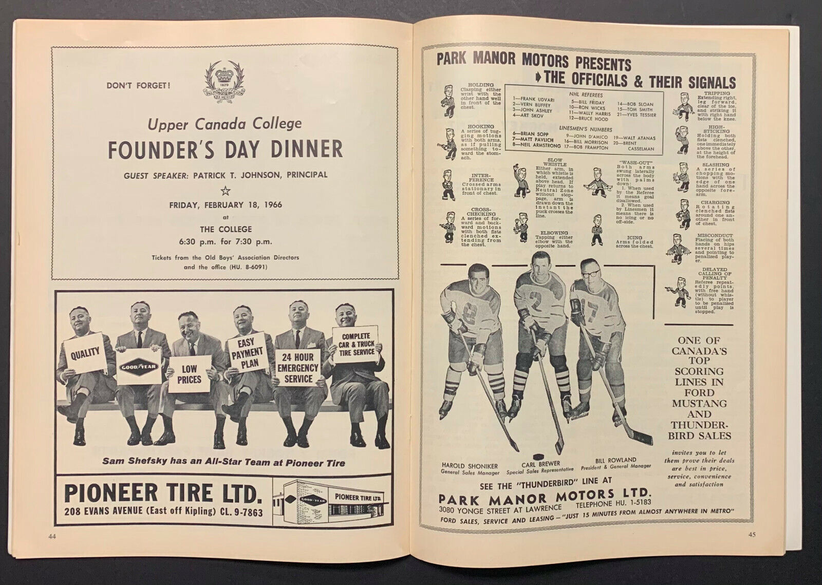 1966 Maple Leaf Gardens Upper Canada College Hockey Night Program Bill Hewitt