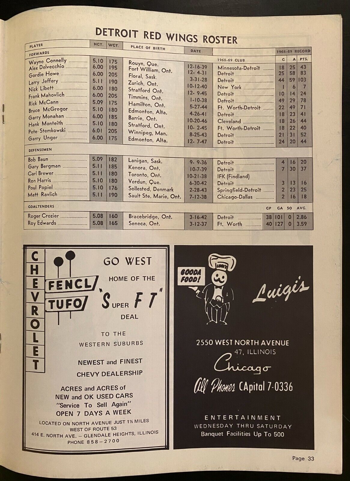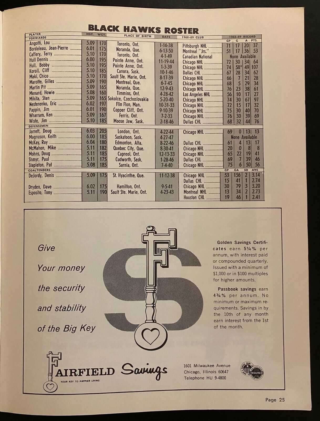 • October 15, 1969 Chicago Stadium hockey program