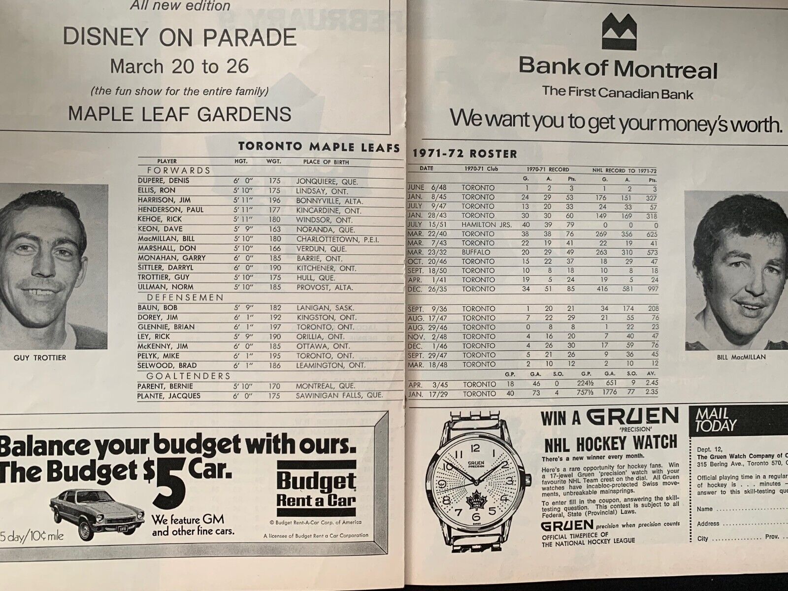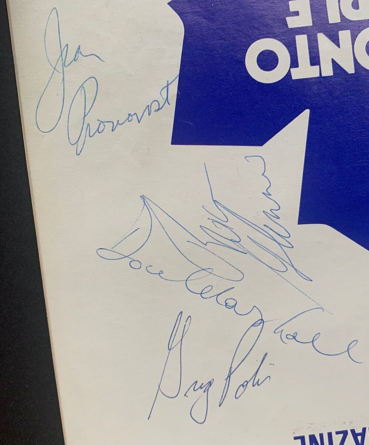 - Program is signed by Tim Horton, Darryl Sittler, Jim Harrison, Jean Pronovost, Ron Ellis, Billy MacMillan, Bryan Hextall, Duane Rupp, Greg Polis, Brian Glennie, Don Marshall and Rick Ley