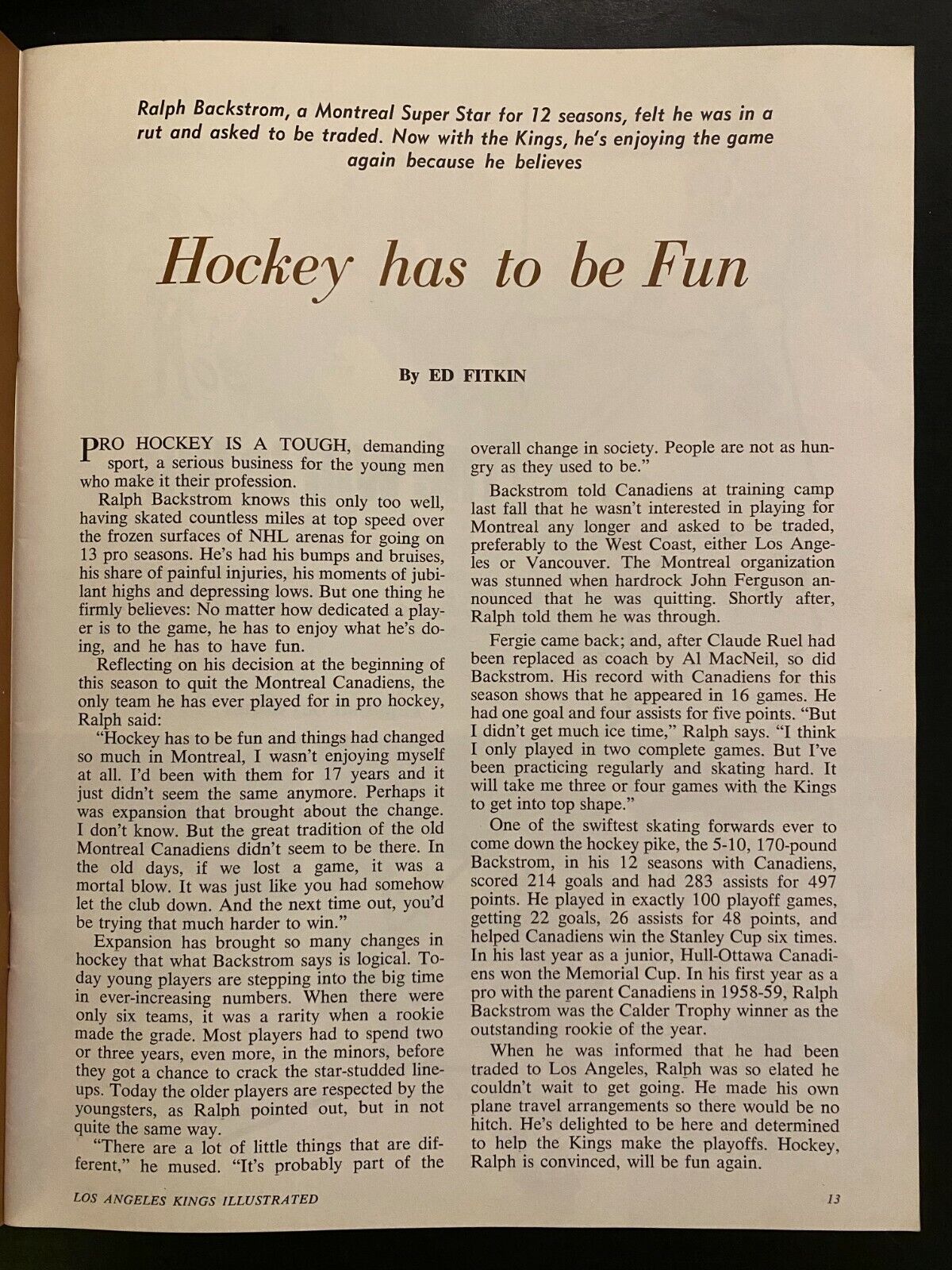• March 11, 1971 hockey program from the Los Angeles Forum