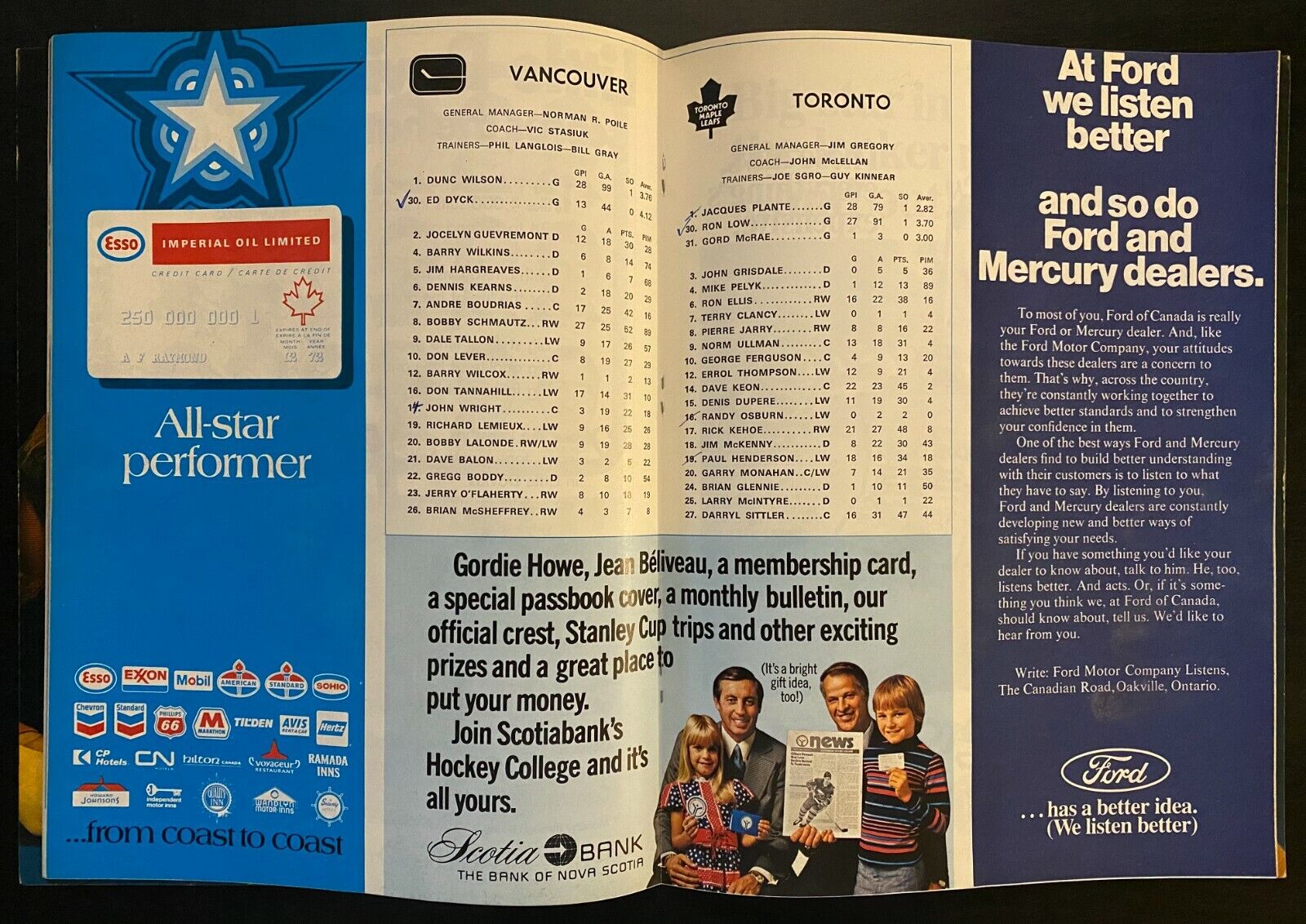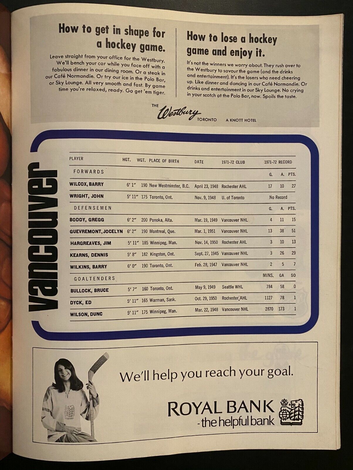 1973 Vancouver Canucks Yearbook NHL Game Program Toronto Maple Leafs Gardens