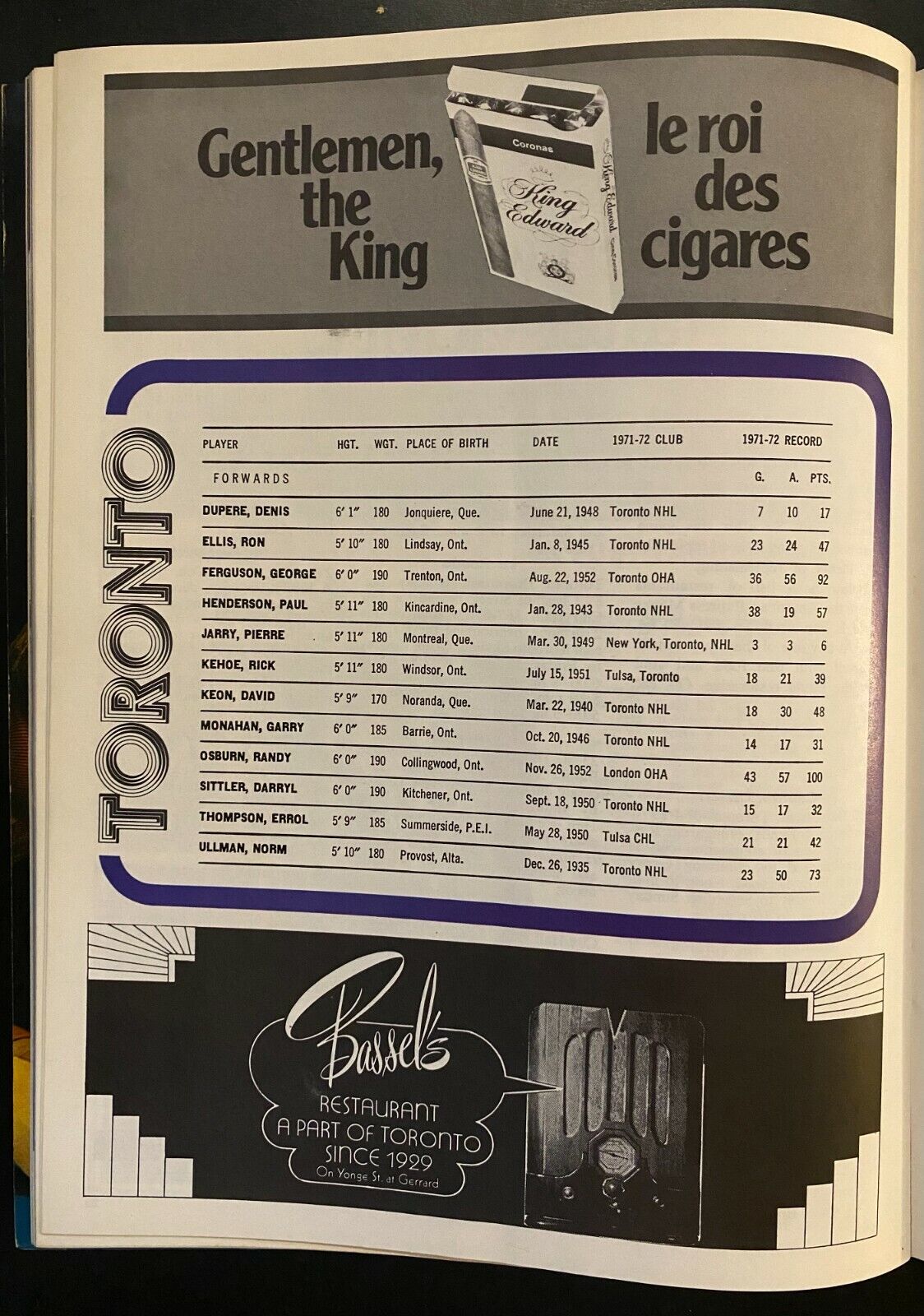 • Vancouver Canucks yearbook with 32 page insert of February 3rd 1973 game program from a game between the Vancouver Canucks and the Toronto Maple Leafs at Maple Leaf Gardens