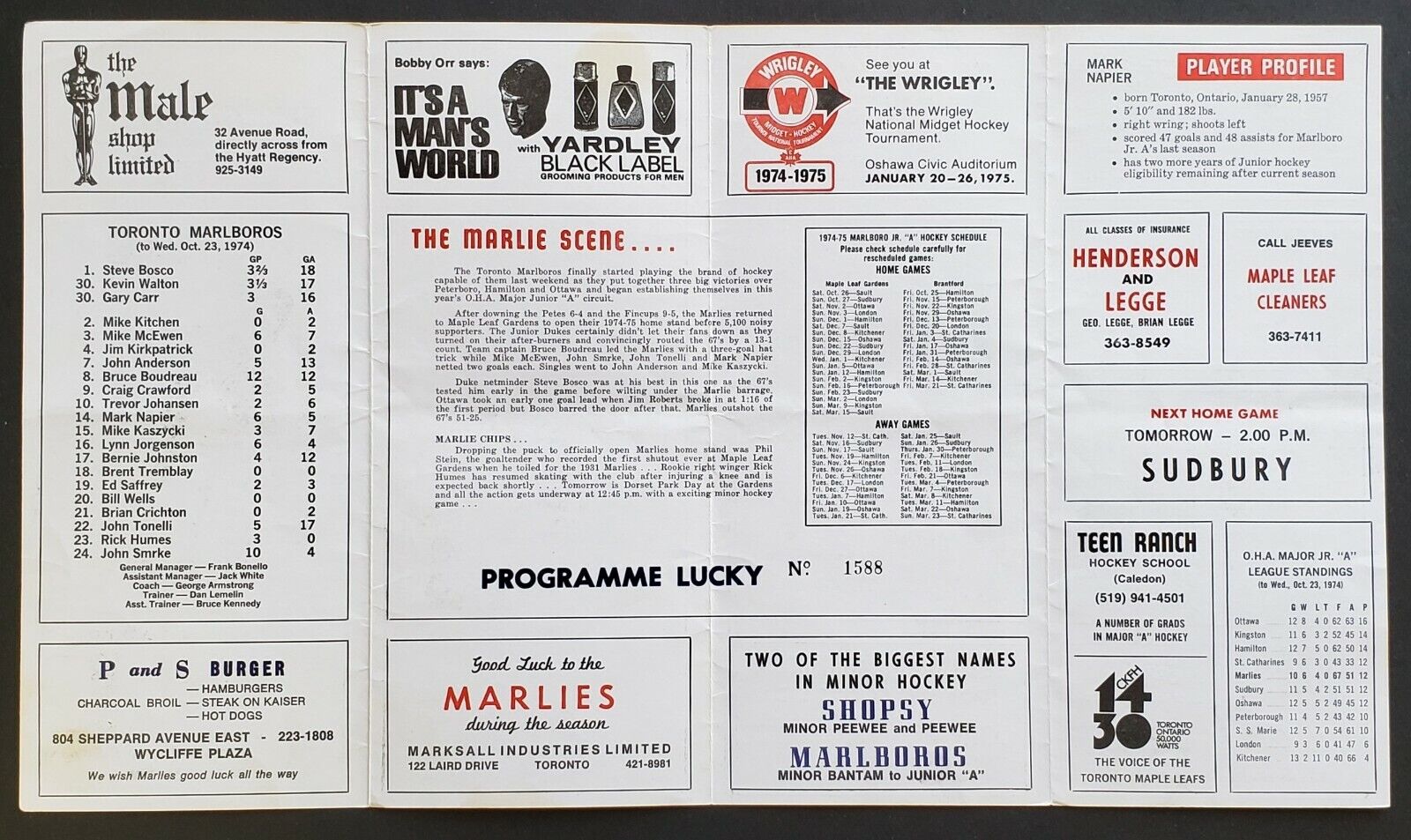 - October 26, 1974 OHA Major Jr A Program @ Maple Leaf Gardens, Toronto