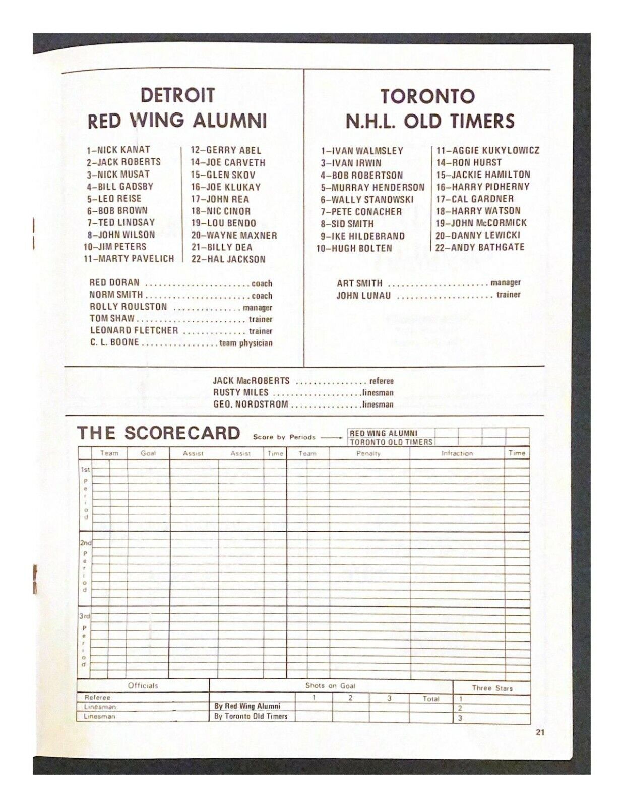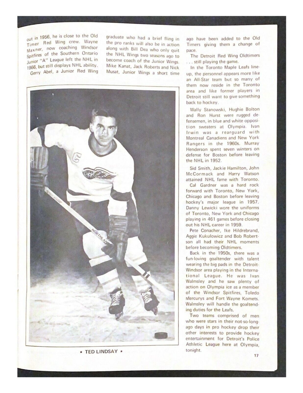- Toronto Maple Leafs Old Timers vs. Detroit Red Wings Old Timers, for the benefit of P.A.L. - the Detroit Police Athletic League