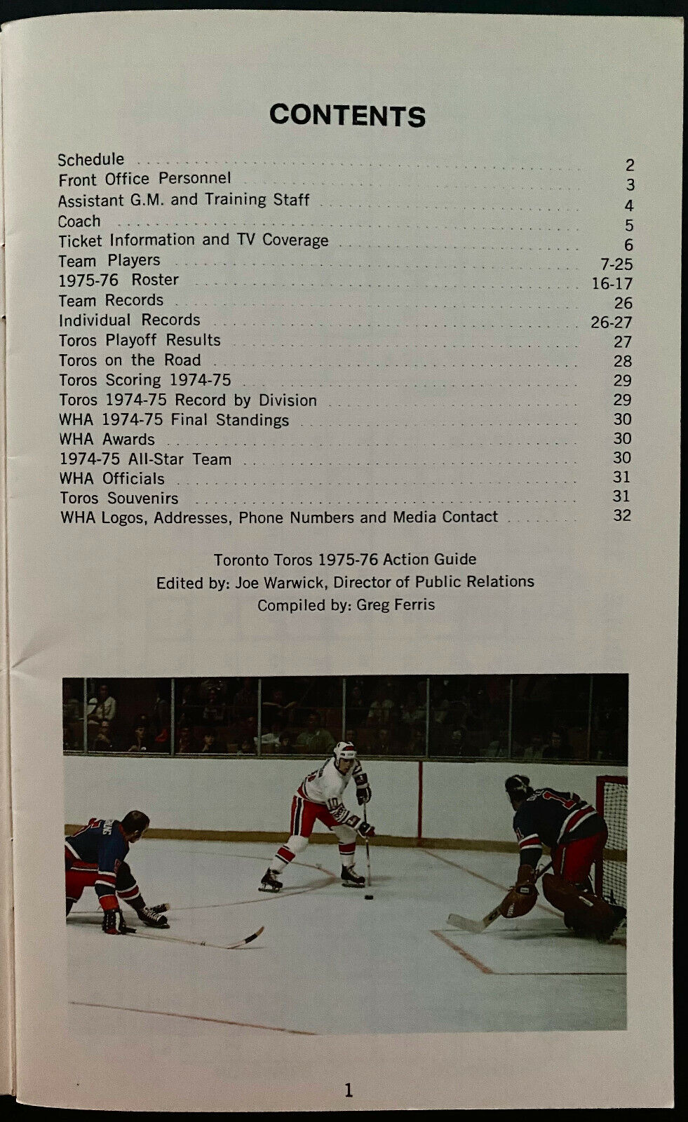 • 1975-76 Toronto Toros WHA Media Guide / Action Guide