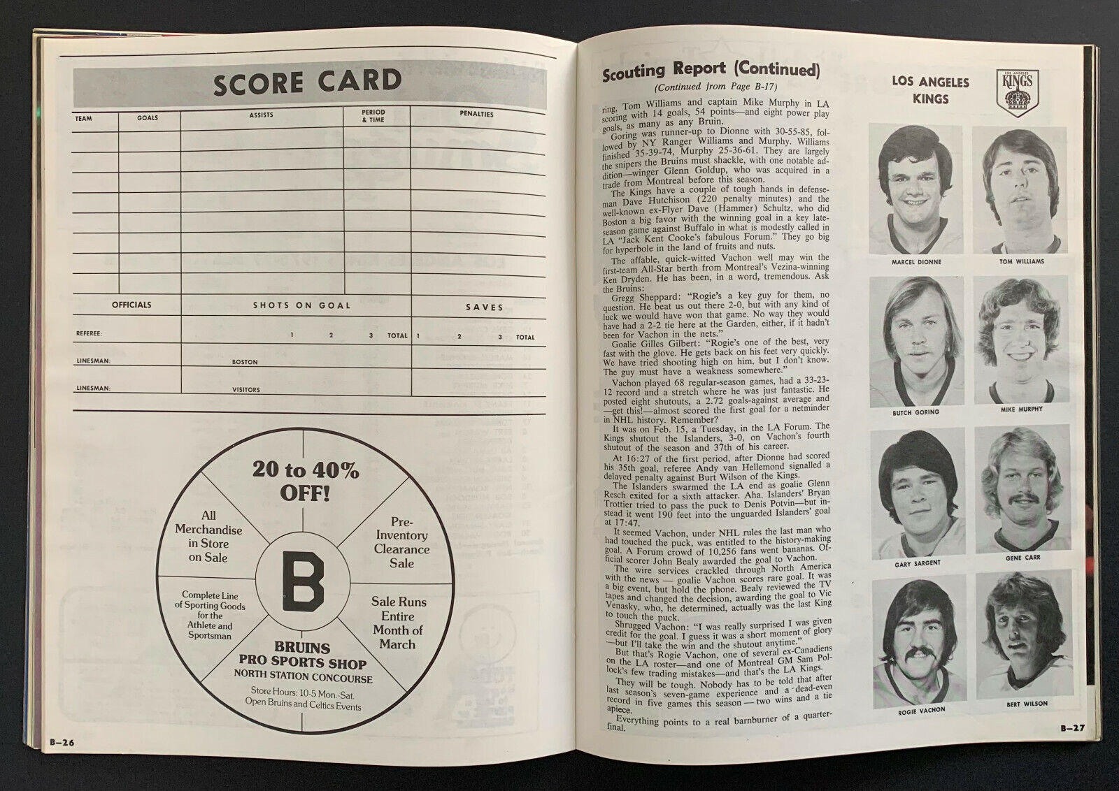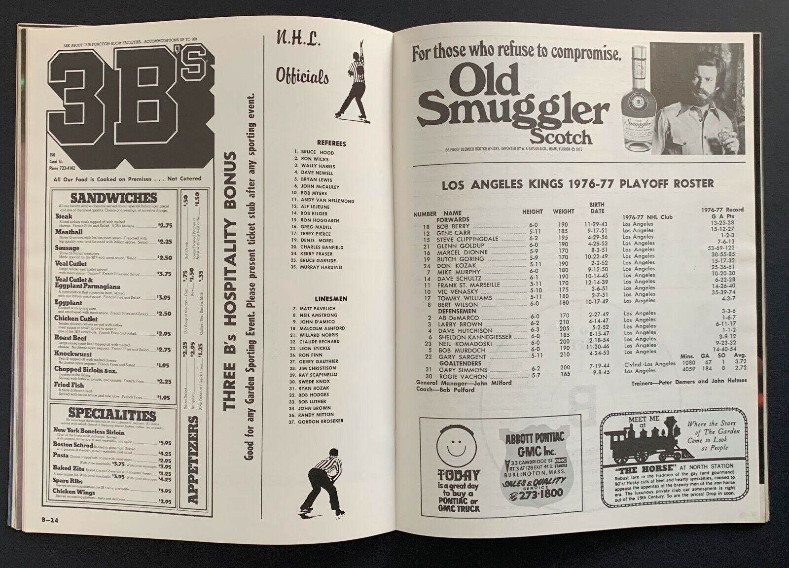 1977 Boston Garden NHL Playoff Program Game 2 Quarter Finals Bruins vs LA KIngs