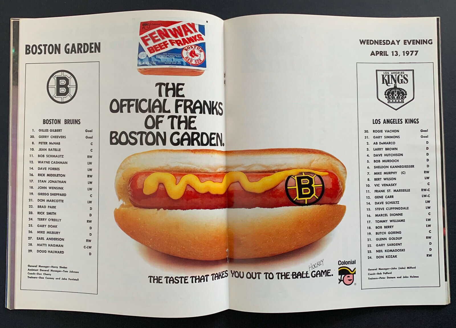 • April 13th 1977 Boston Garden NHL playoff program game 2 quarter final series. Bruins defeat the L.A. Kings 6-2