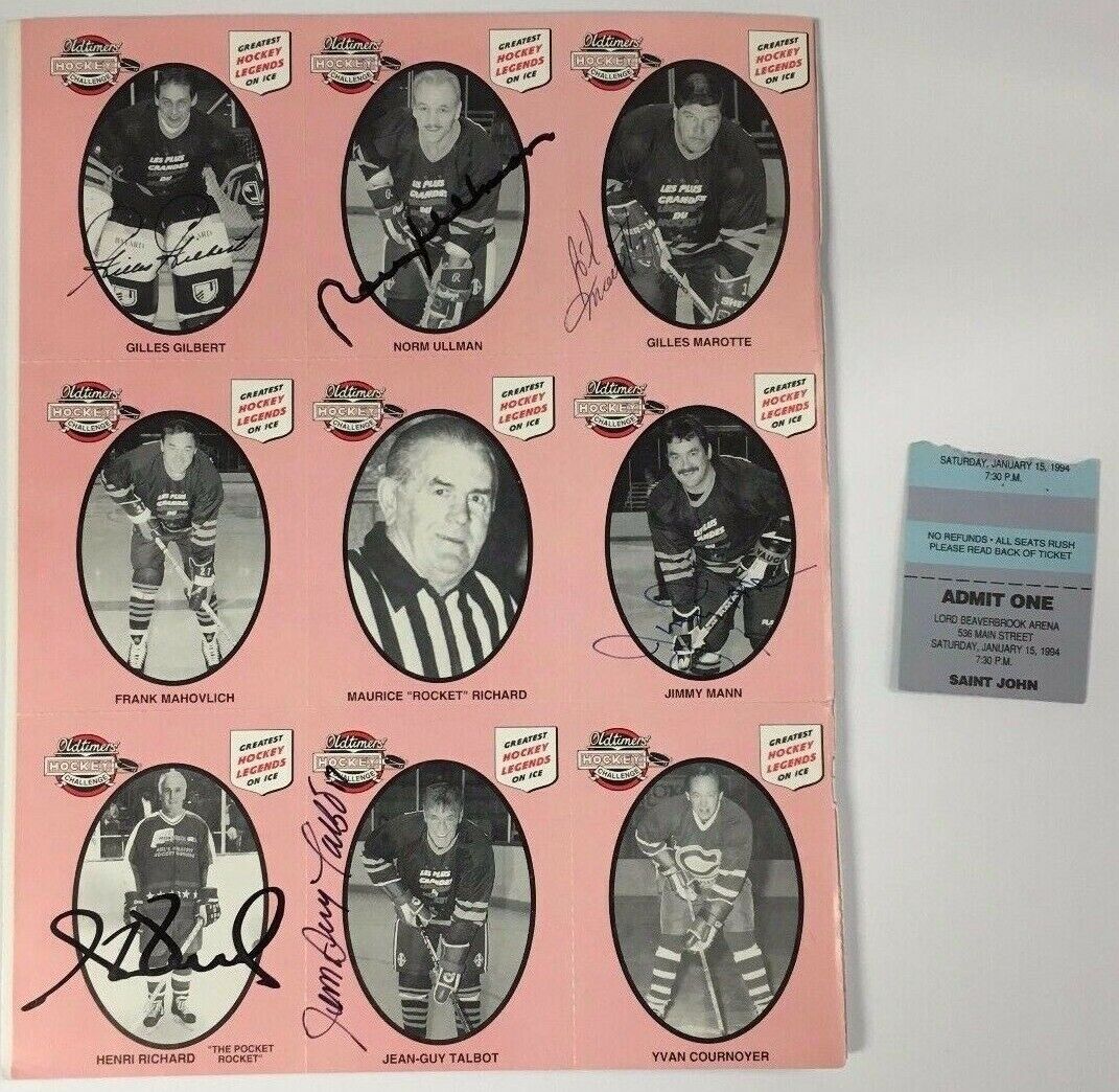 - Program is signed by participating NHL Oldtimers the autographs include Gilles Gilbert, norm Ullman, Gilles Marotte, Kimmy Mann, Henri Richard, Jean Guy Talbot, Ed Shack, Ab Mcdonald, Red Storey, Marcell Dionne, Jim Neilson, Yvon Lambert and More
