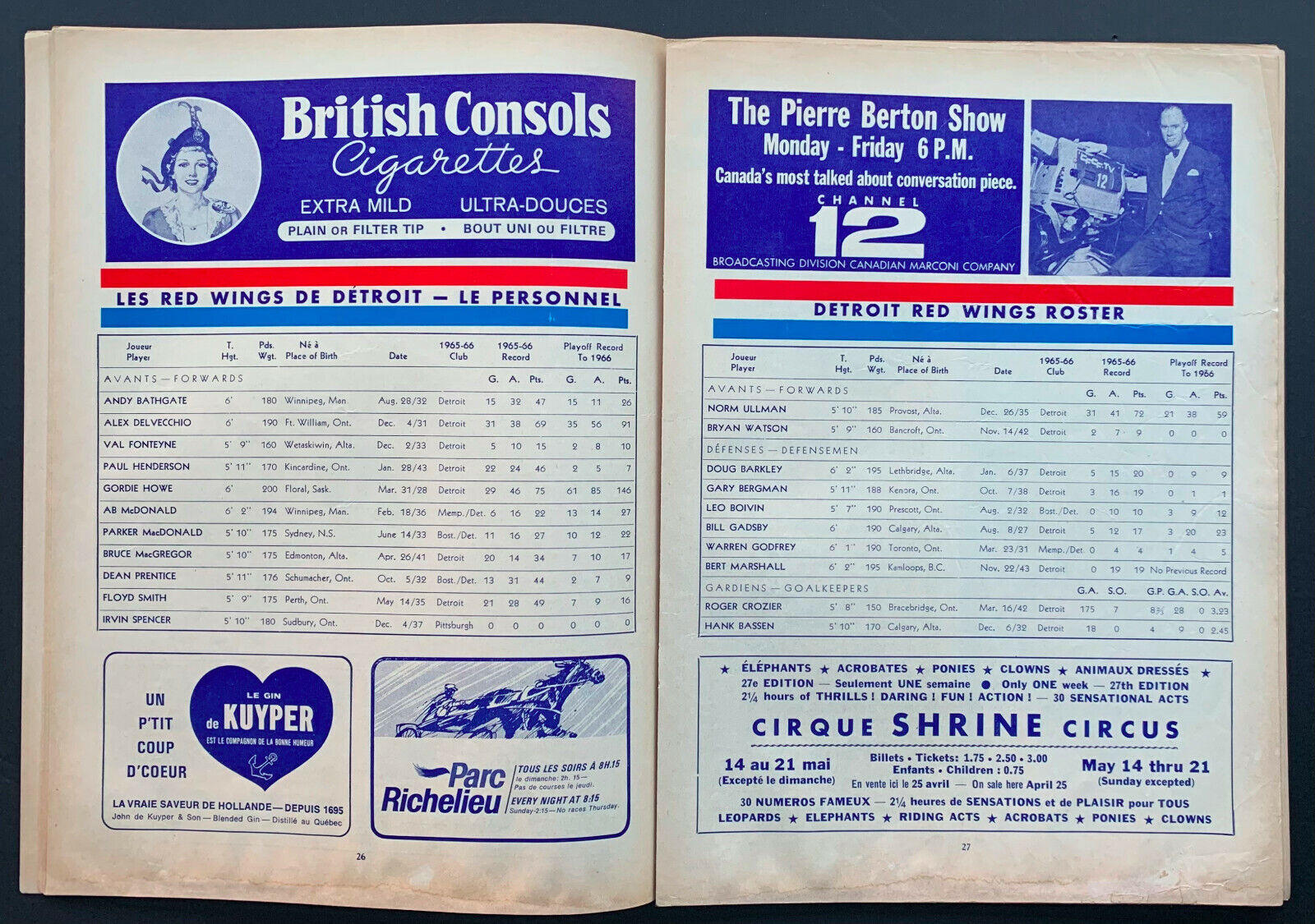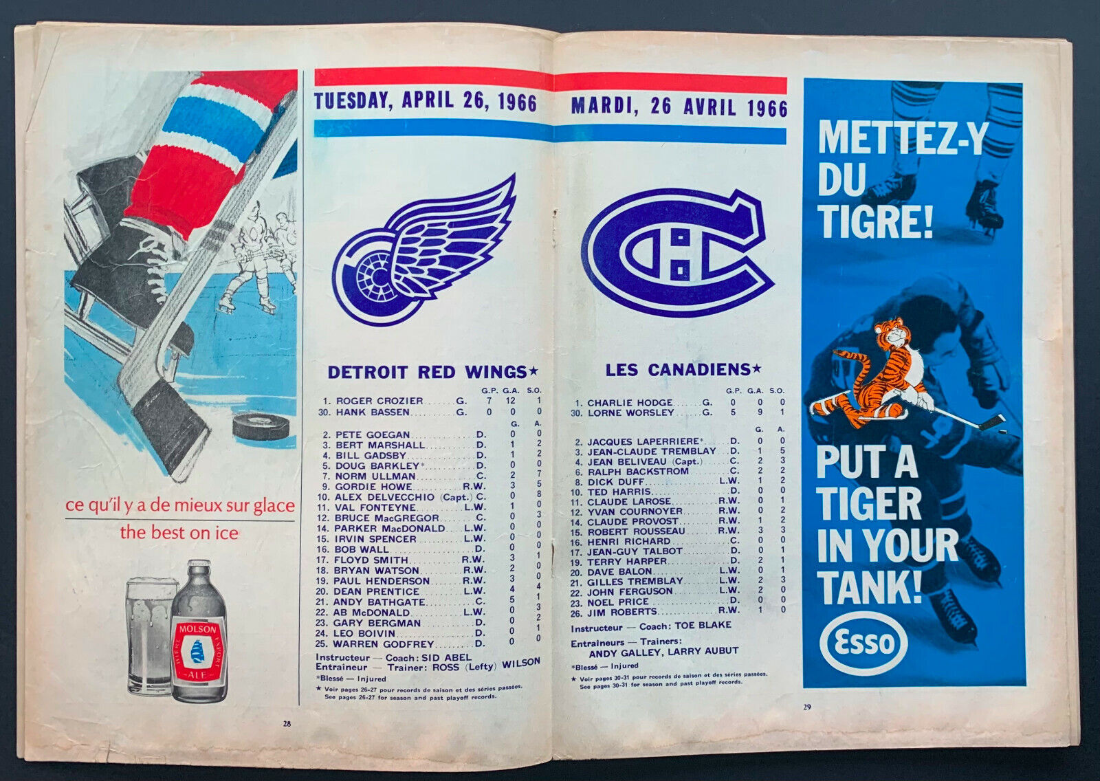 - April 26th 1966 Stanley Cup Finals NHL hockey program game 2 played at Montreal, Forum
