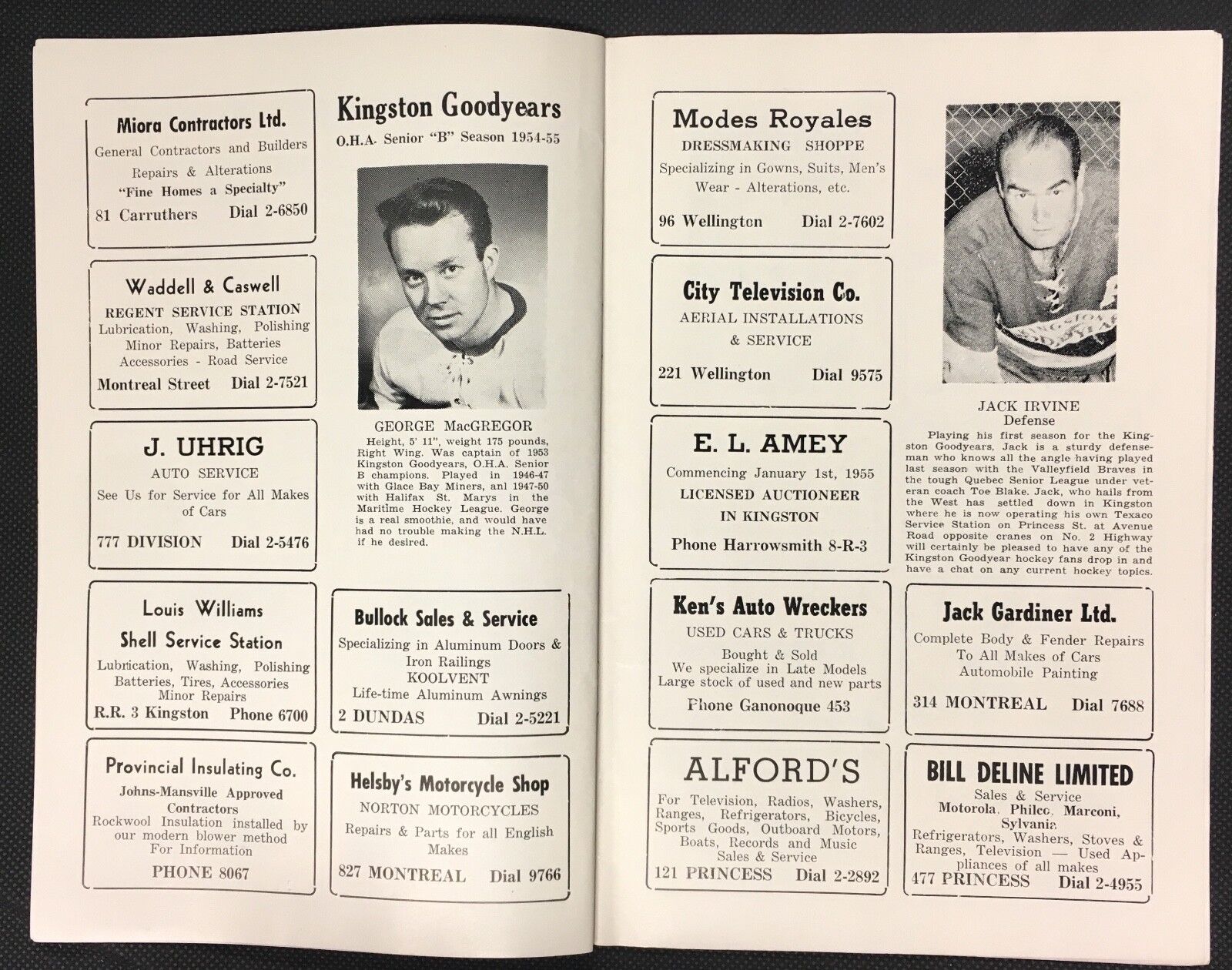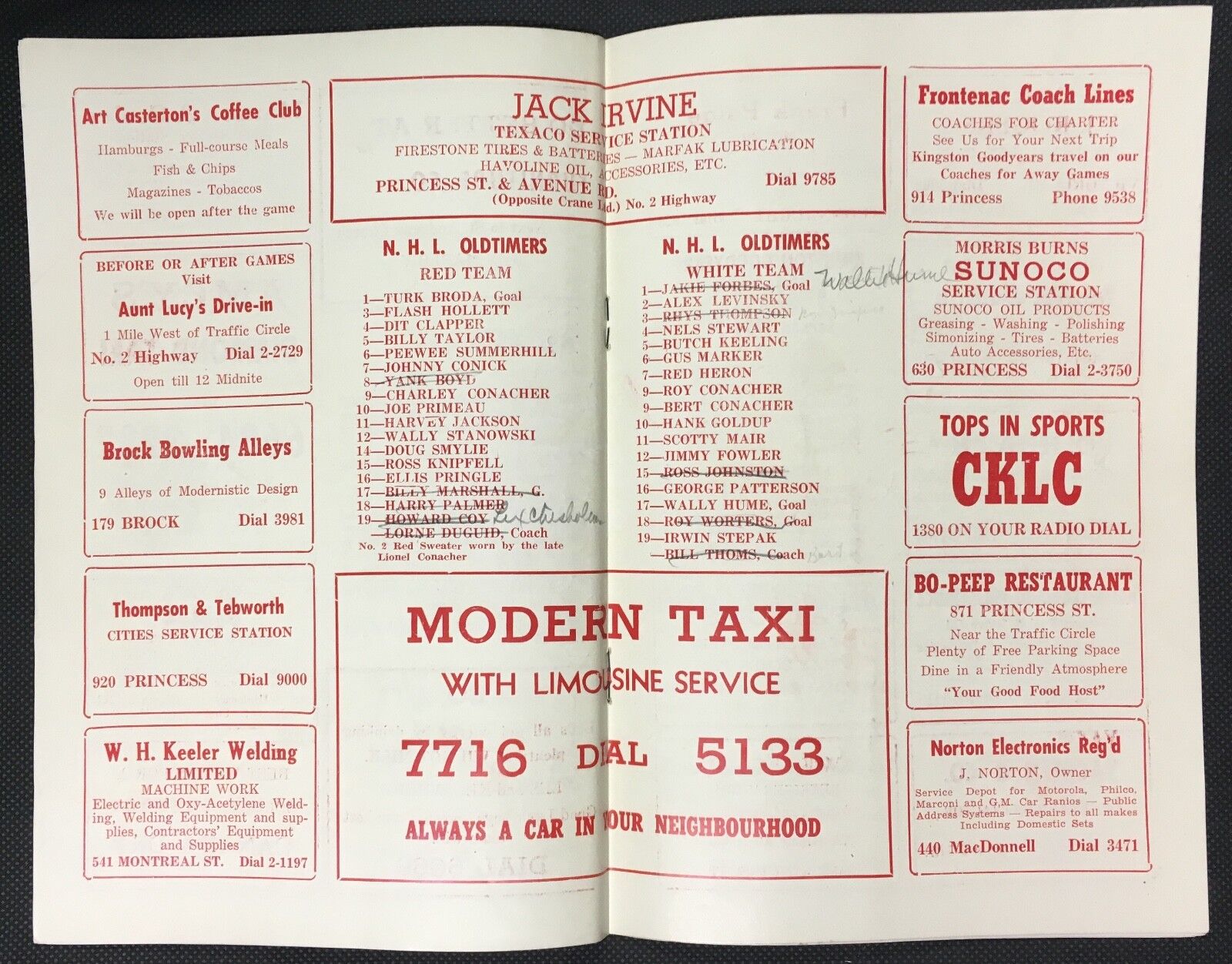 - 1953/54 NHL oldtimers hockey program from game in Kingston Ontario