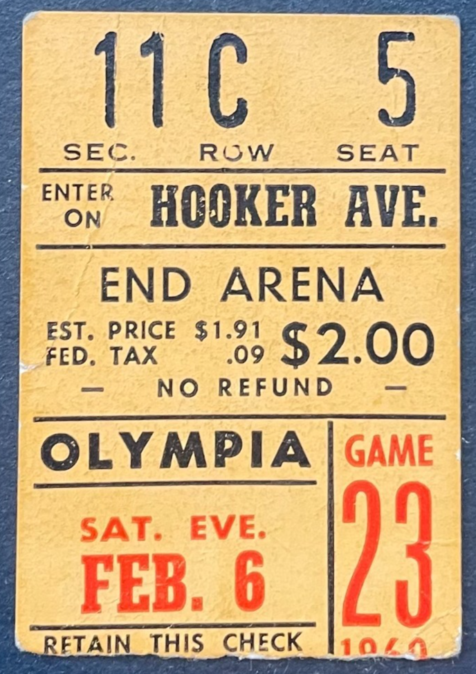 - Ticket stub for Feb. 6, 1960 game at Olympia Stadium in Detroit for game between the Detroit Red Wings and Toronto Maple Leafs. Gordie Howe scores his 25th goal of the season but the Maple Leafs defeat the Red Wings 6-4