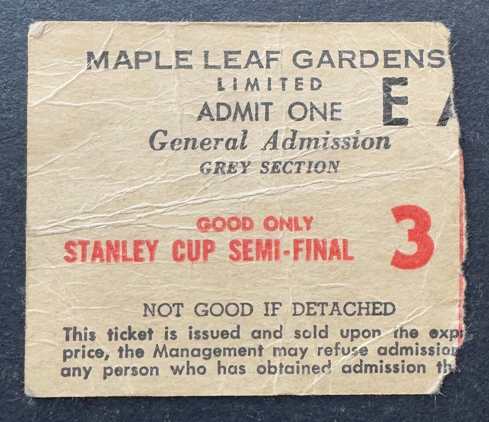 - Early 1960s Stanley Cup Game 3 Semi-Final Ticket Stub