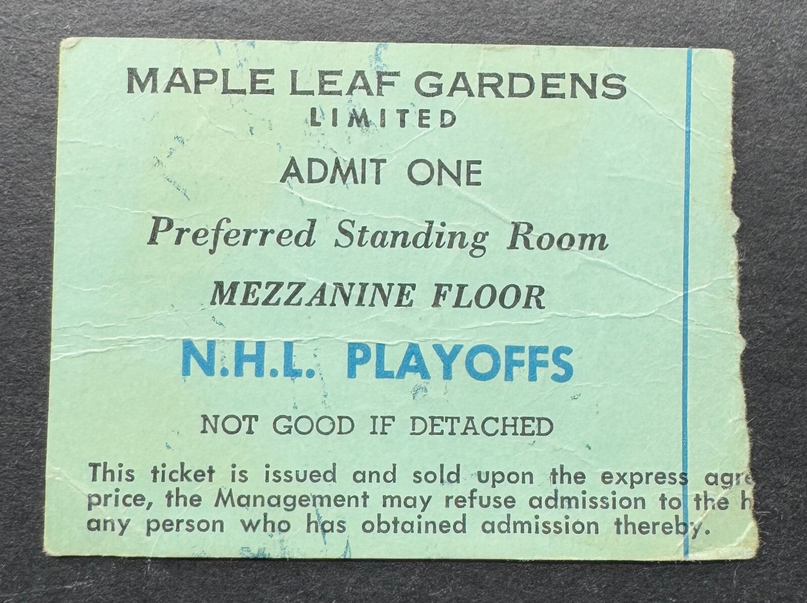 1962 Stanley Cup Game 2 Semi-Final Ticket Stub Maple Leaf Gardens NY Rangers