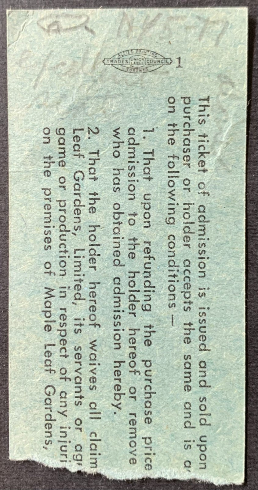 - 1967 Maple Leaf Gardens Ticket Stub