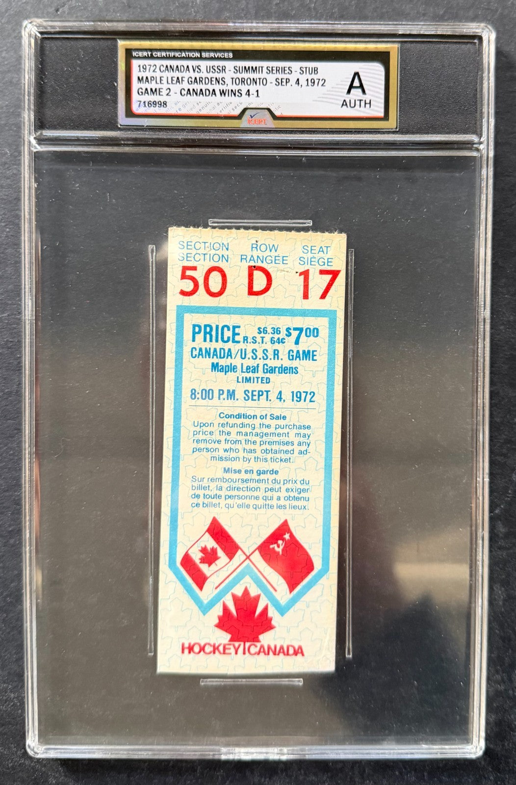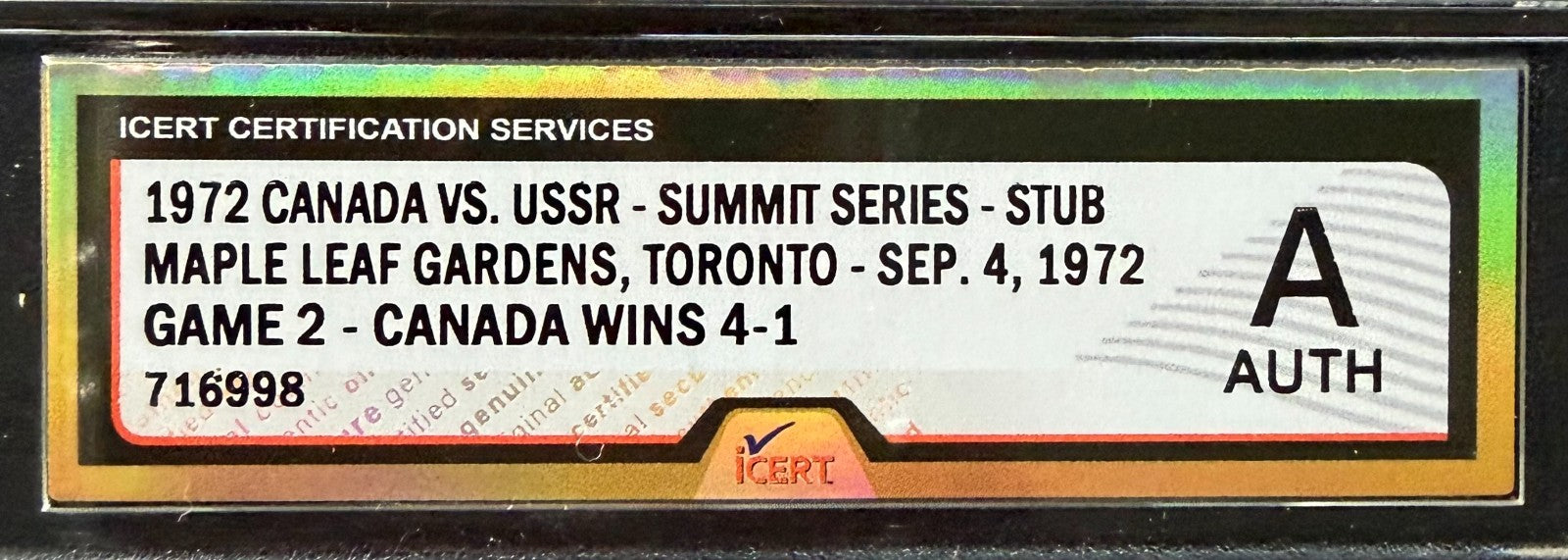 1972 Summit Series Game 2 Ticket Stub iCert A Hockey Canada USSR MLG Toronto Vtg