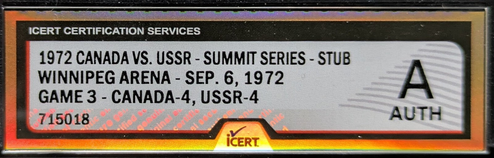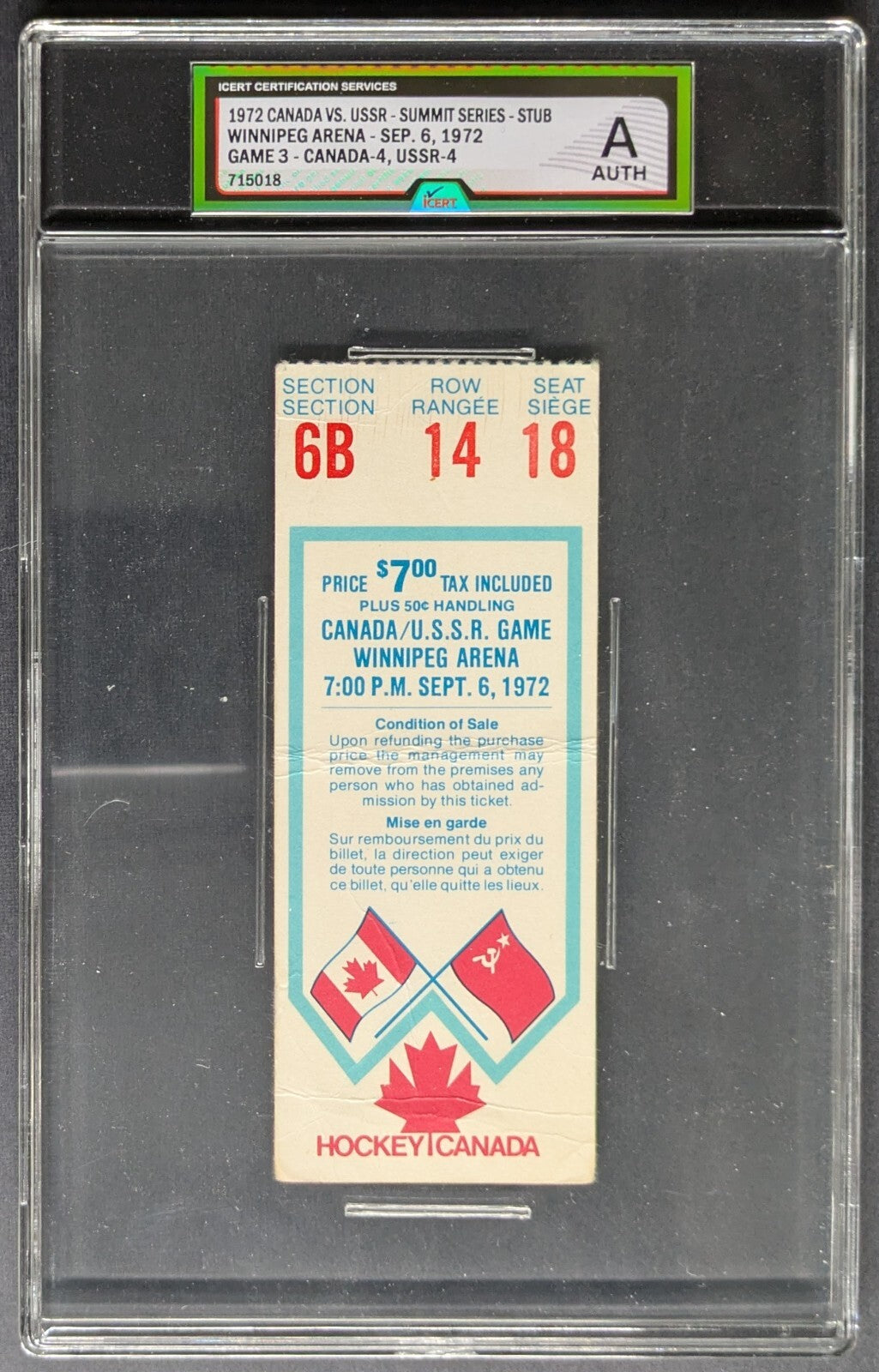 - 1972 Summit Series Game 3 Ticket Stub iCert Graded