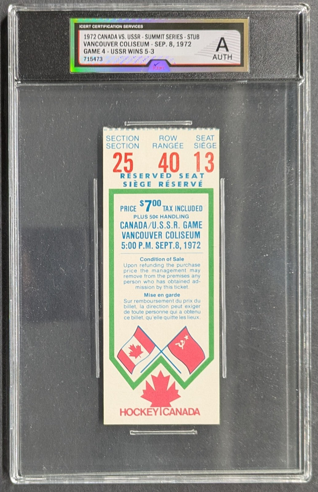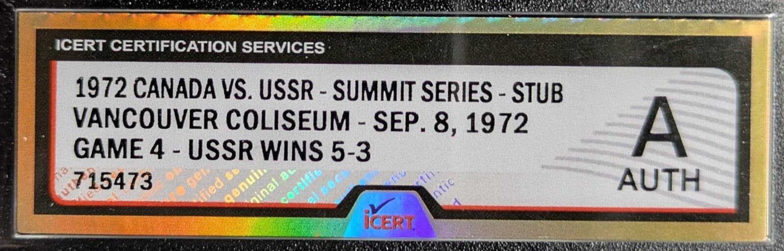 - 1972 Summit Series Game 4 Ticket Stub iCert A Auth