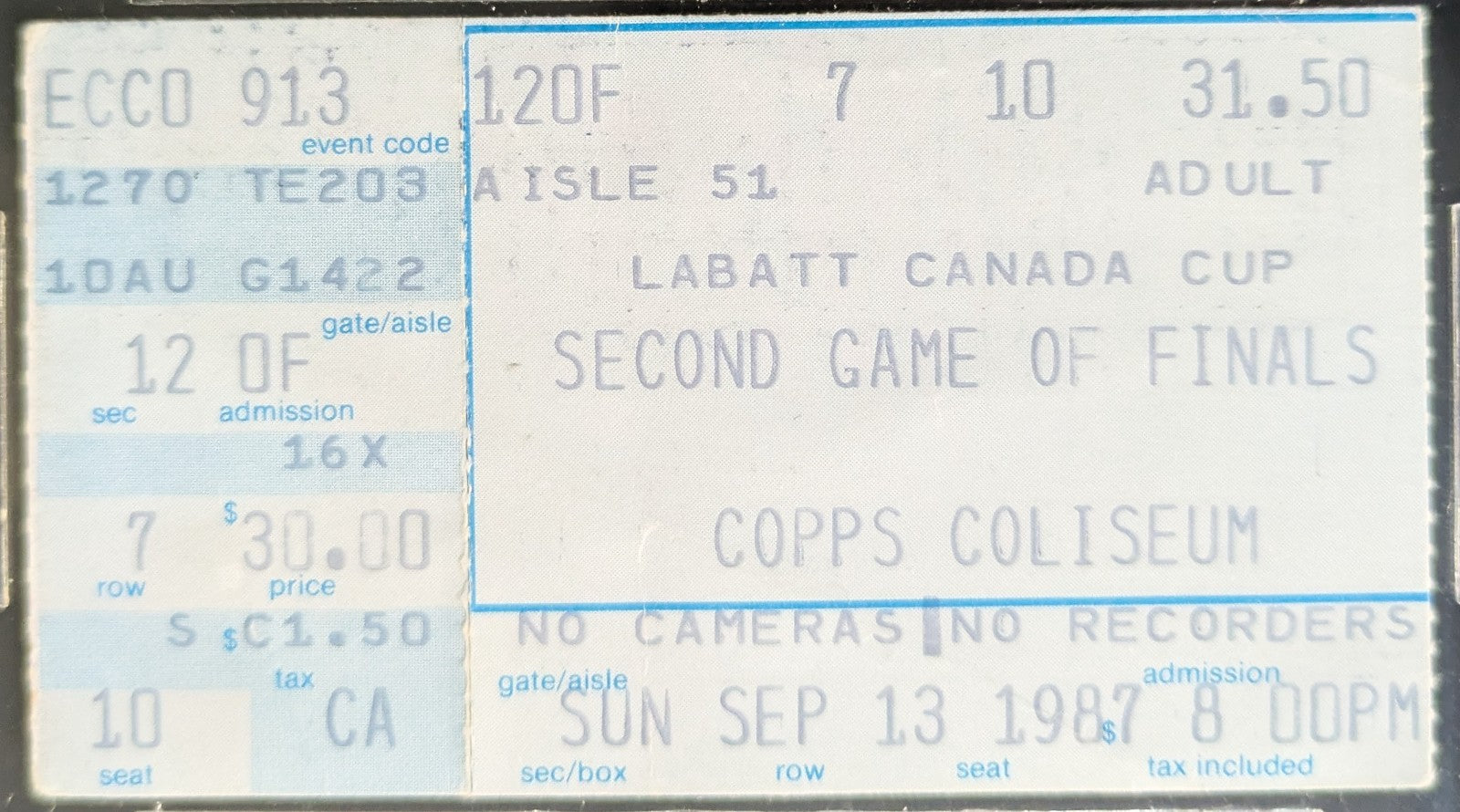 - September 13th, 1987 Canada Cup hockey final game 2 ticket stub