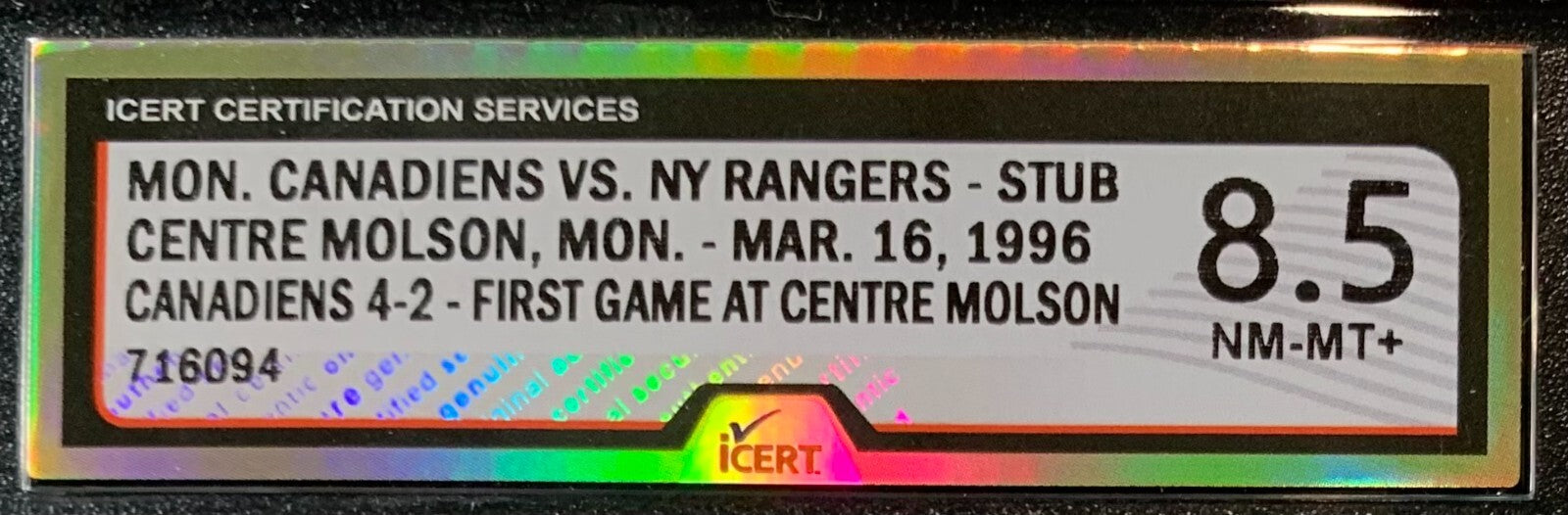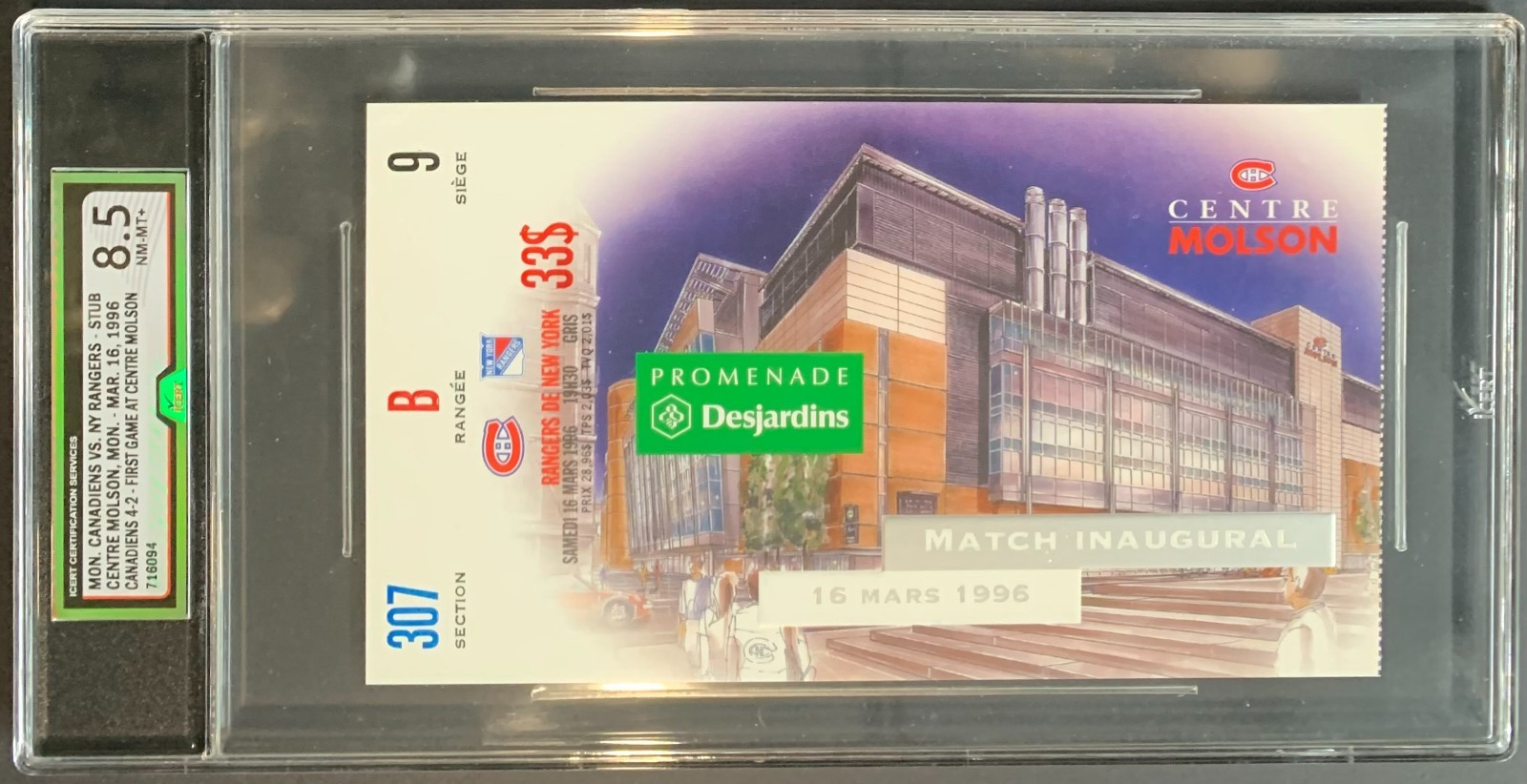 - Montreal Canadiens Molson Centre First Game Ticke Stub iCert 8.5 NM-MT+