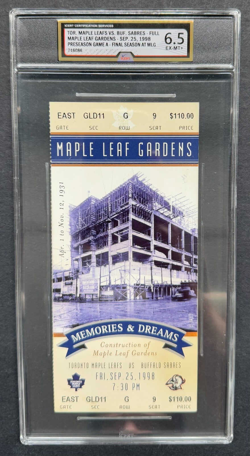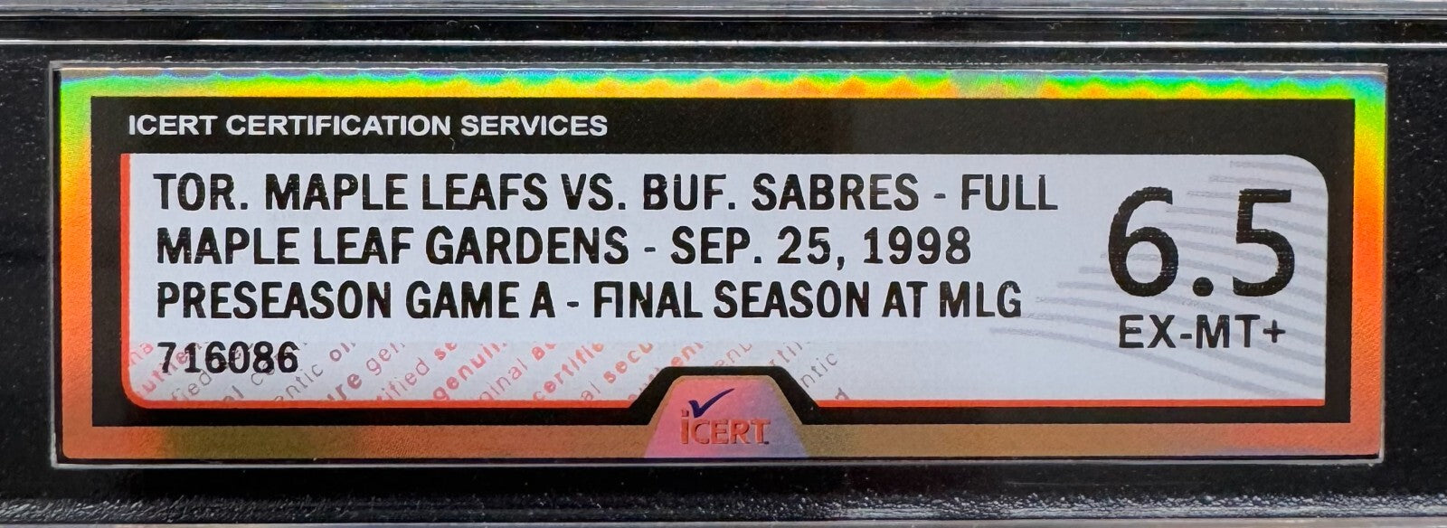 1998 MLG Final Season Full Ticket iCert 6.5 NHL Hockey Maple Leafs Sabres Graded