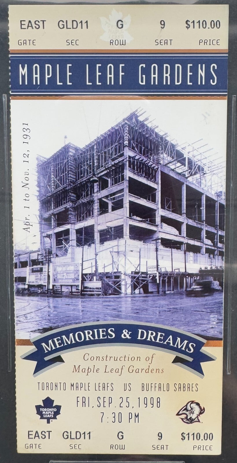 • Ticket for pre-season game A on Sept. 25, 1998 for the final season at Maple Leaf Gardens. Toronto Maple Leafs vs the Buffalo Sabres