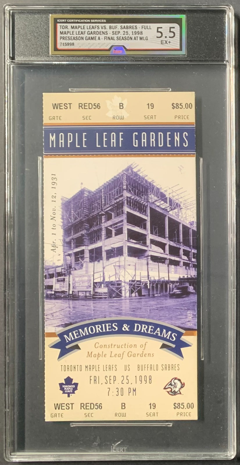 • 1998 Preseason Game Final Season At Maple Leaf Gardens Full Ticket iCert Graded