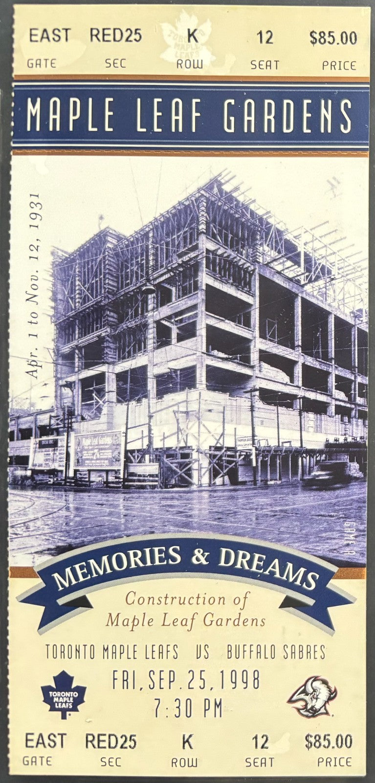 • 1998 Toronto Maple Leafs Vs Buffalo Sabres full ticket