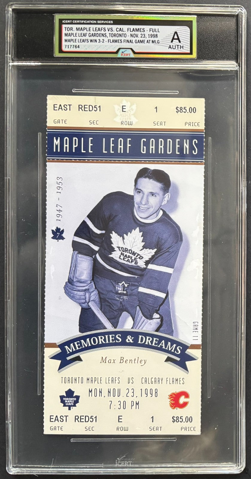 1998 Toronto Maple Leafs Vs Calgary Flames Full Ticket iCert A Auth NHL MLG Vtg