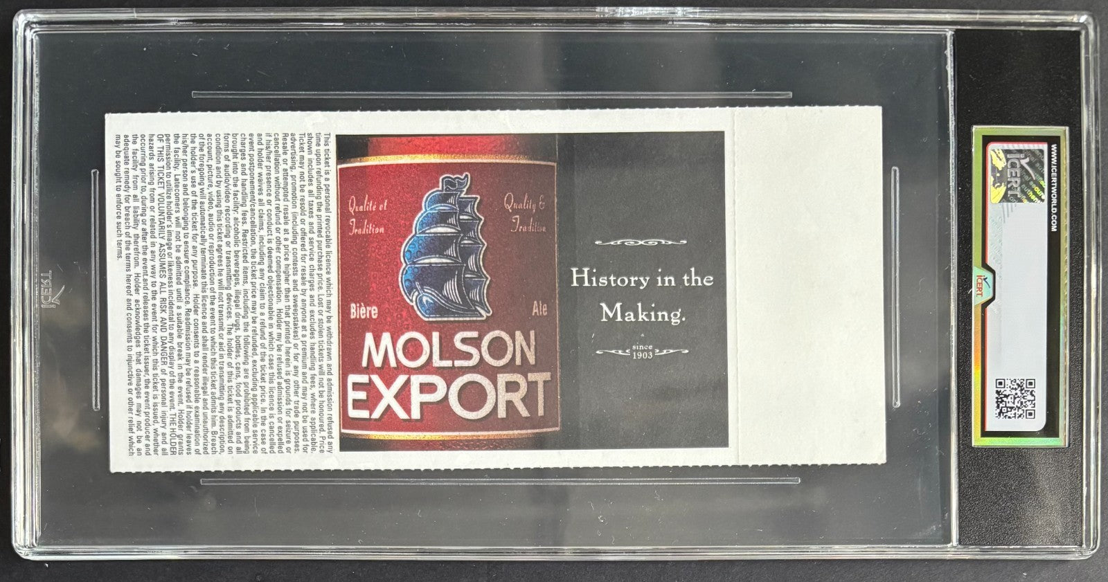 • Slabbed and authenticated by iCert. Ticket itself shows little to no notable edgewear and minor corner wear, but a very small area of surface paper loss in the top left corner (residual wear from being removed from the ticket strip) is visible from the front.