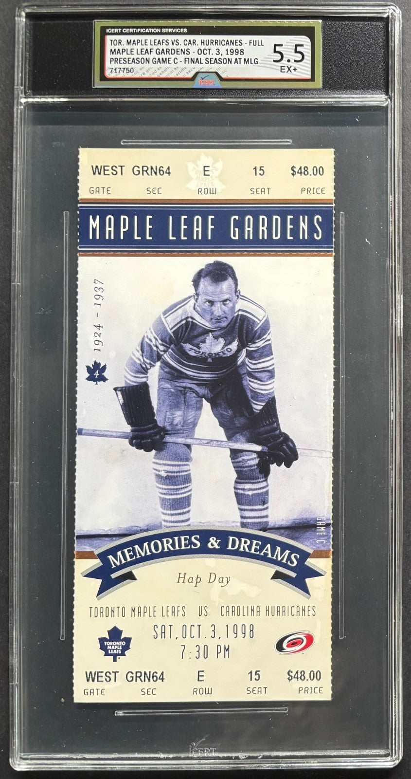 1998 Toronto Maple Leafs Vs Carolina Hurricanes Full Ticket iCert 5.5 MLG NHL