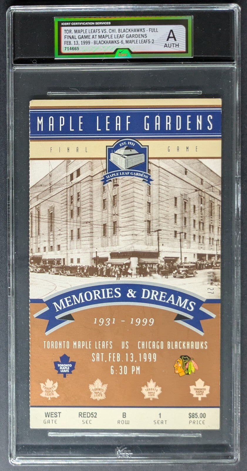 - 1999 Final Game At Maple Leaf Gardens Full Ticket iCert Graded