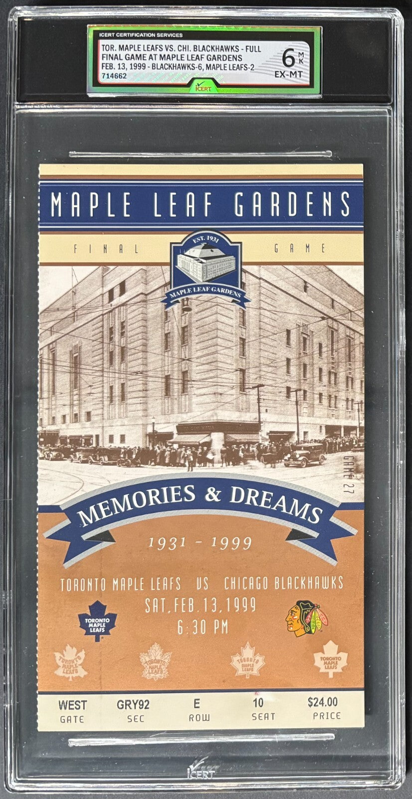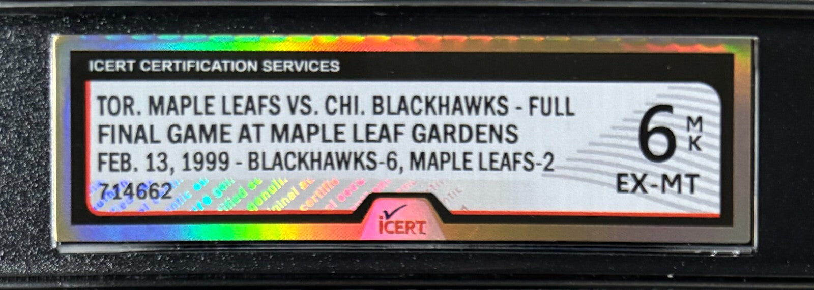- 1999 Maple Leaf Gardens Final Game Full Ticket iCert 6MK EX-MT