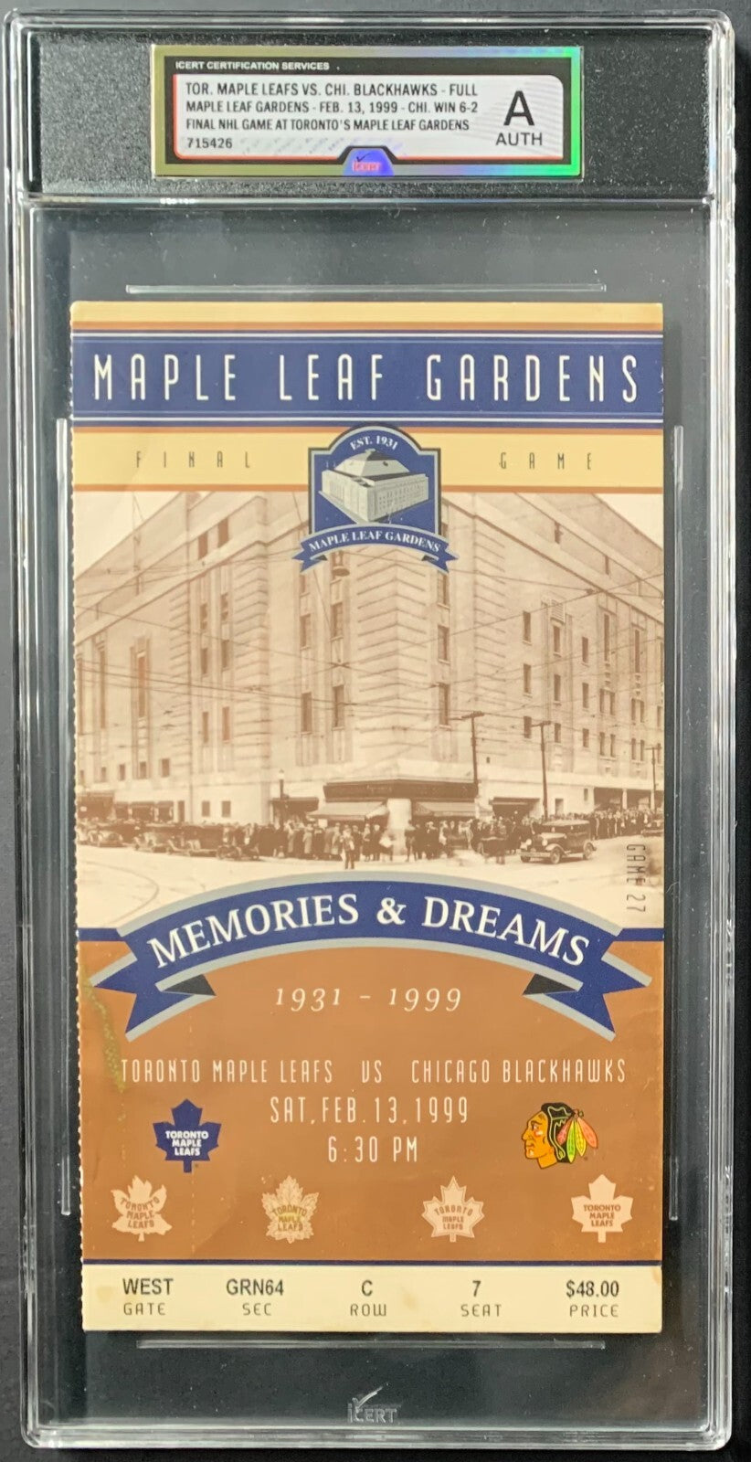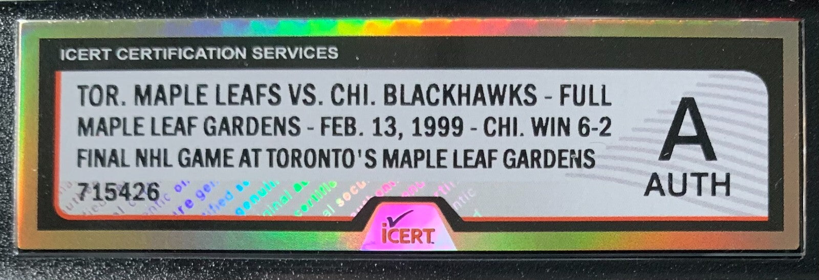 - 1999 Maple Leaf Gardens Final NHL Game Full Ticket iCert Graded