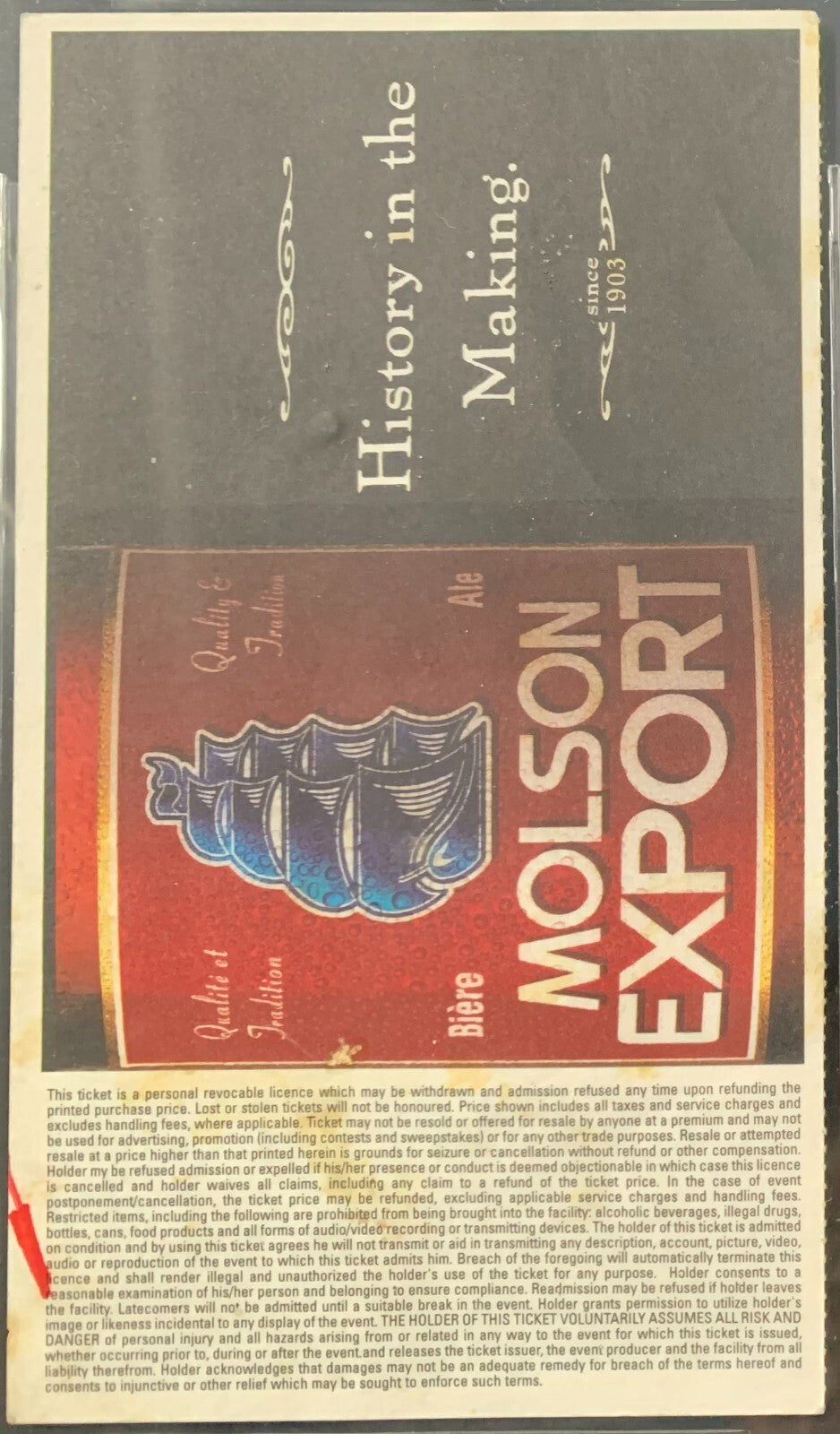 - Slabbed & authenticated by iCert. Ticket itself is in great condition; light corner and edge wear, reverse has a few spots of discolouration and was marked upon entry (as was the standard with this game)