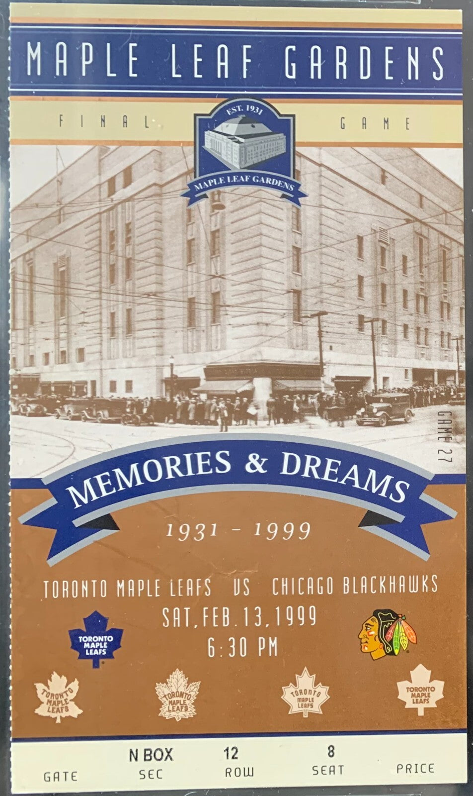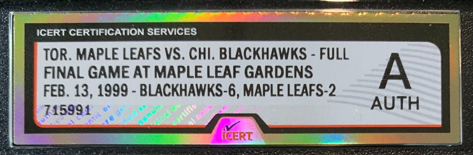 - 1999 Maple Leaf Gardens Final NHL Game Full Ticket iCert Graded