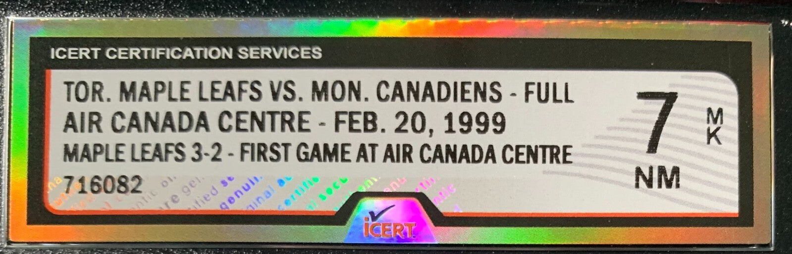 - Maple Leafs First Game Air Canada Centre Full Ticket iCert Graded