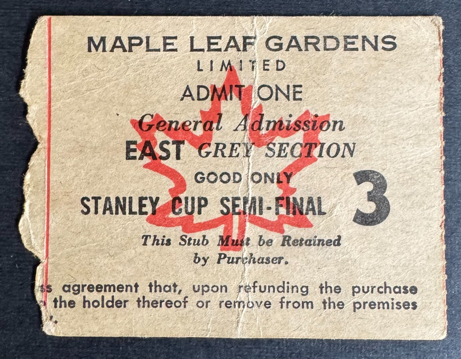 - Early 1960s Maple Leaf Gardens Stanley Cup Semifinals Ticket Stub