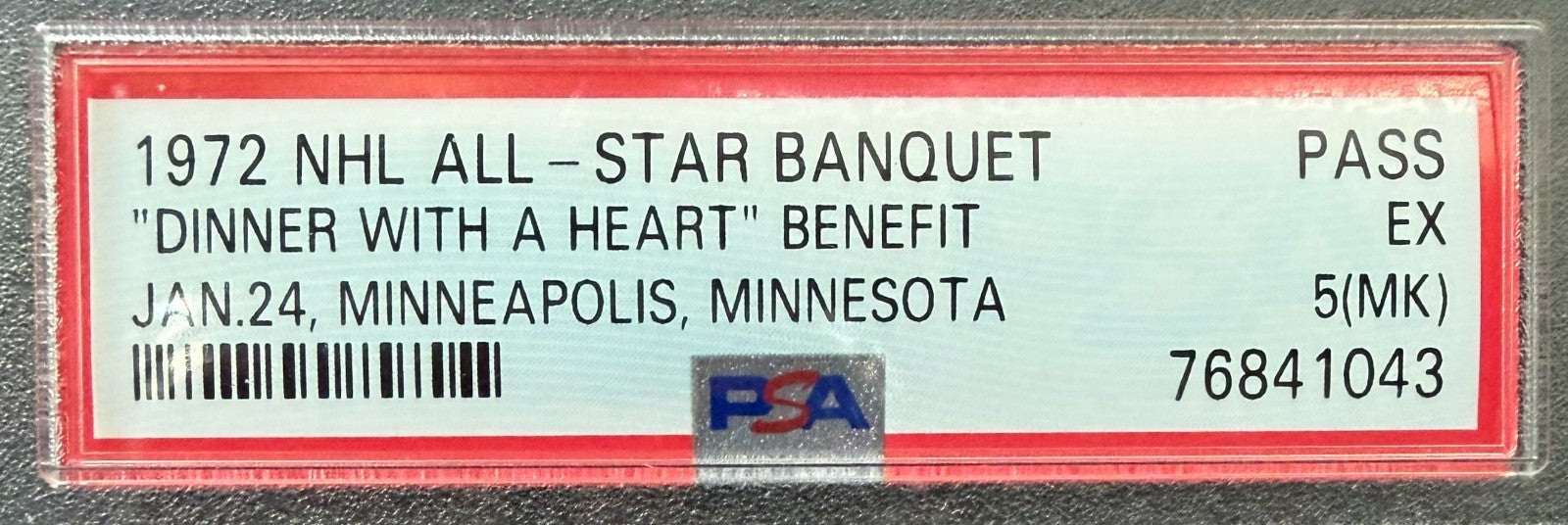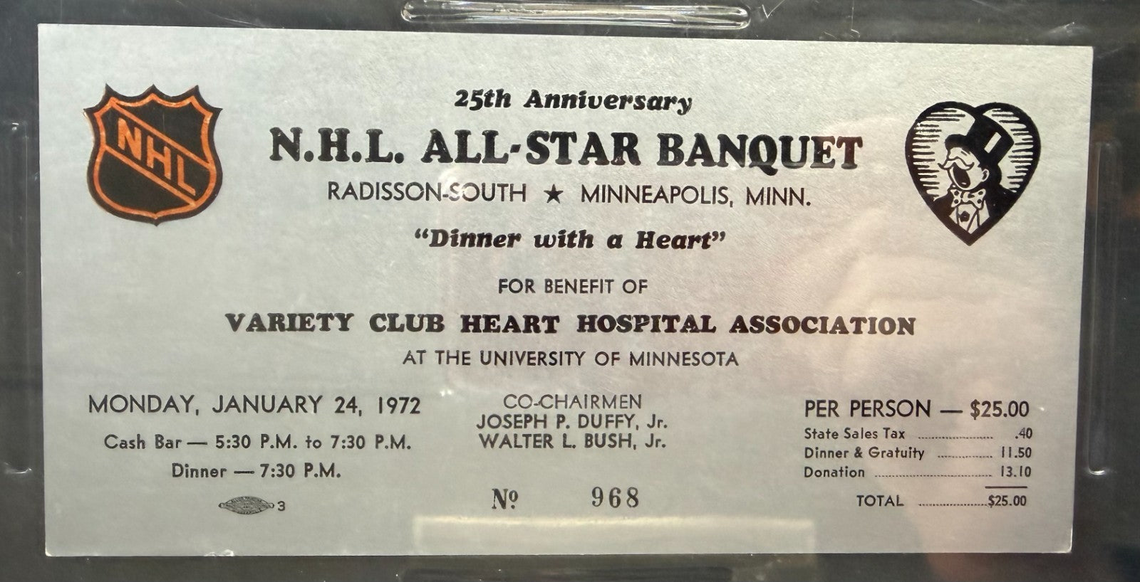 - NHL 1972 25th Anniversary All-Star Banquet "Dinner with a Heart" Benefit pass
