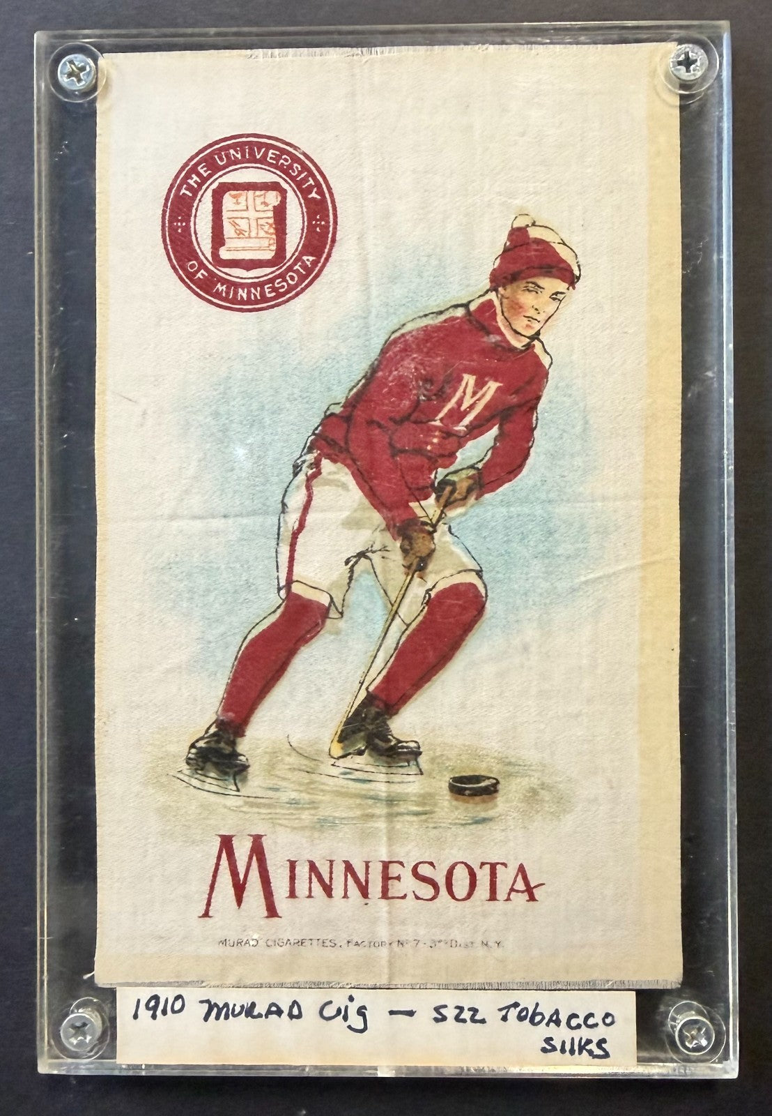 - Vintage 1910 Murad Cigarettes college hockey silk University of Minnesota S-22