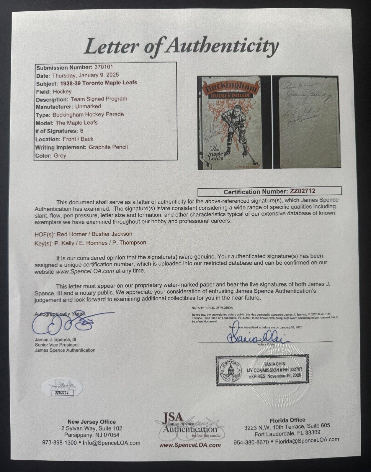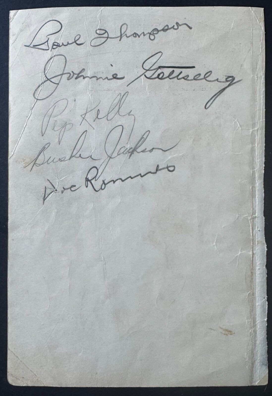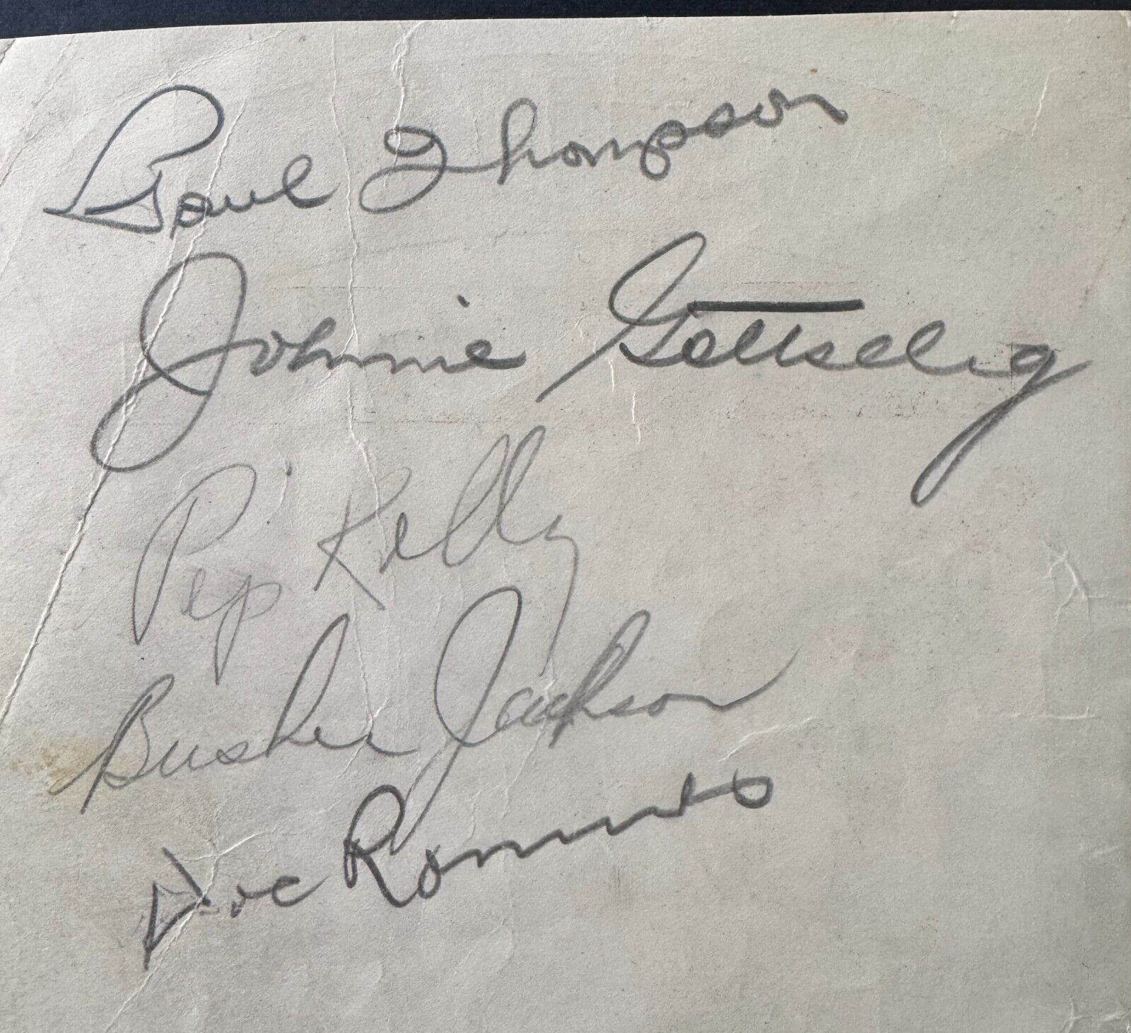 • Signed on one side HOFer Red Horner and other side by HOFer Busher Jackson as well as Pep Kelly, Paul Thompson and Doc Romnes