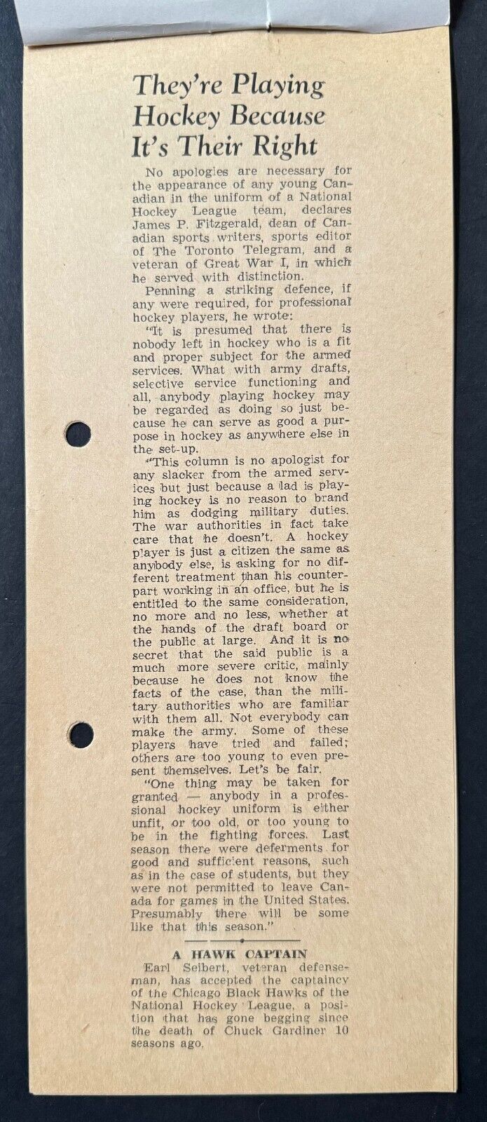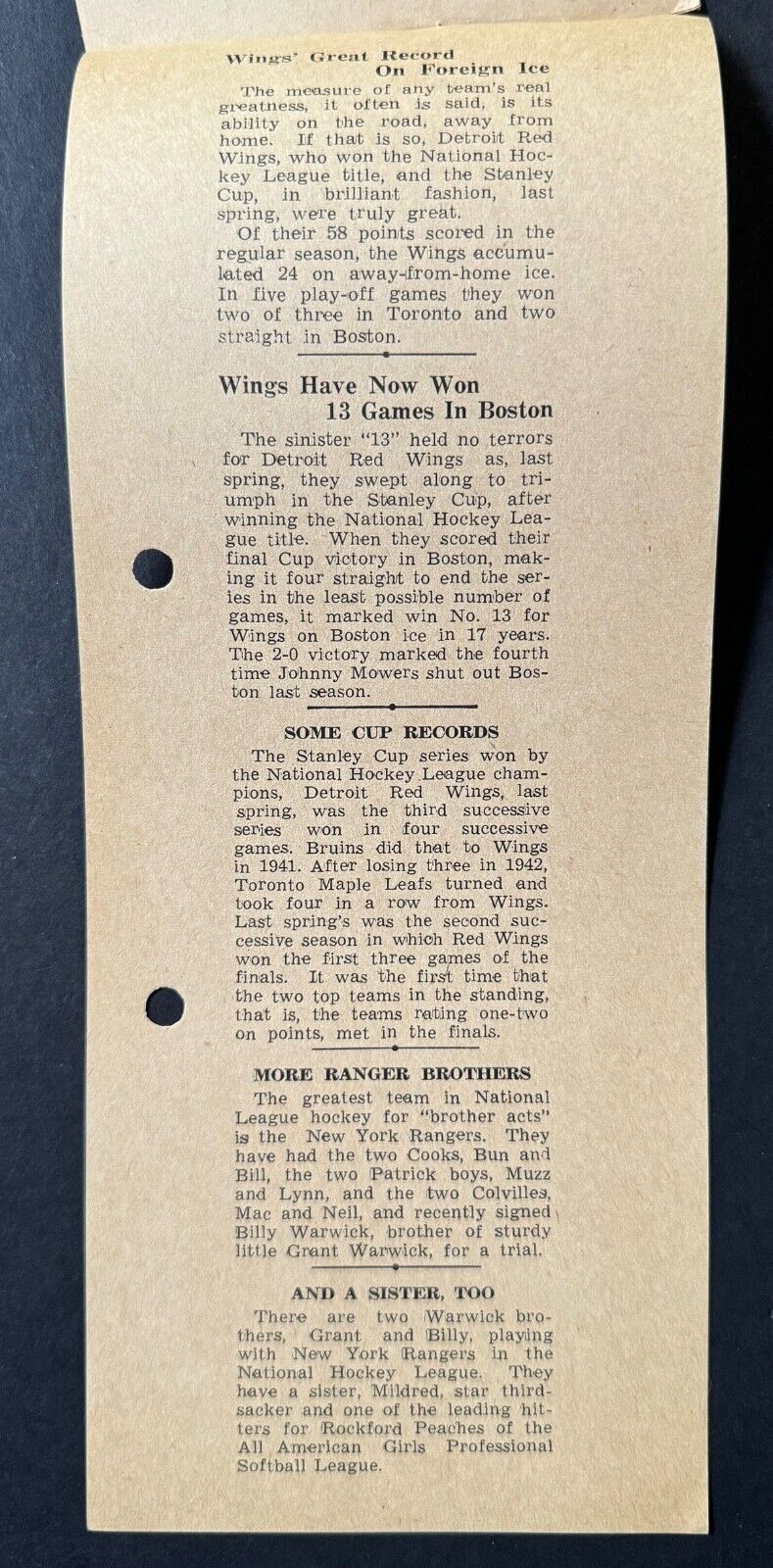 - November 2nd, 1943 vintage 'Features Facts And Fillers About Hockey' brochure from The National Hockey League Sun Life Building in Montreal, Quebec, Canada