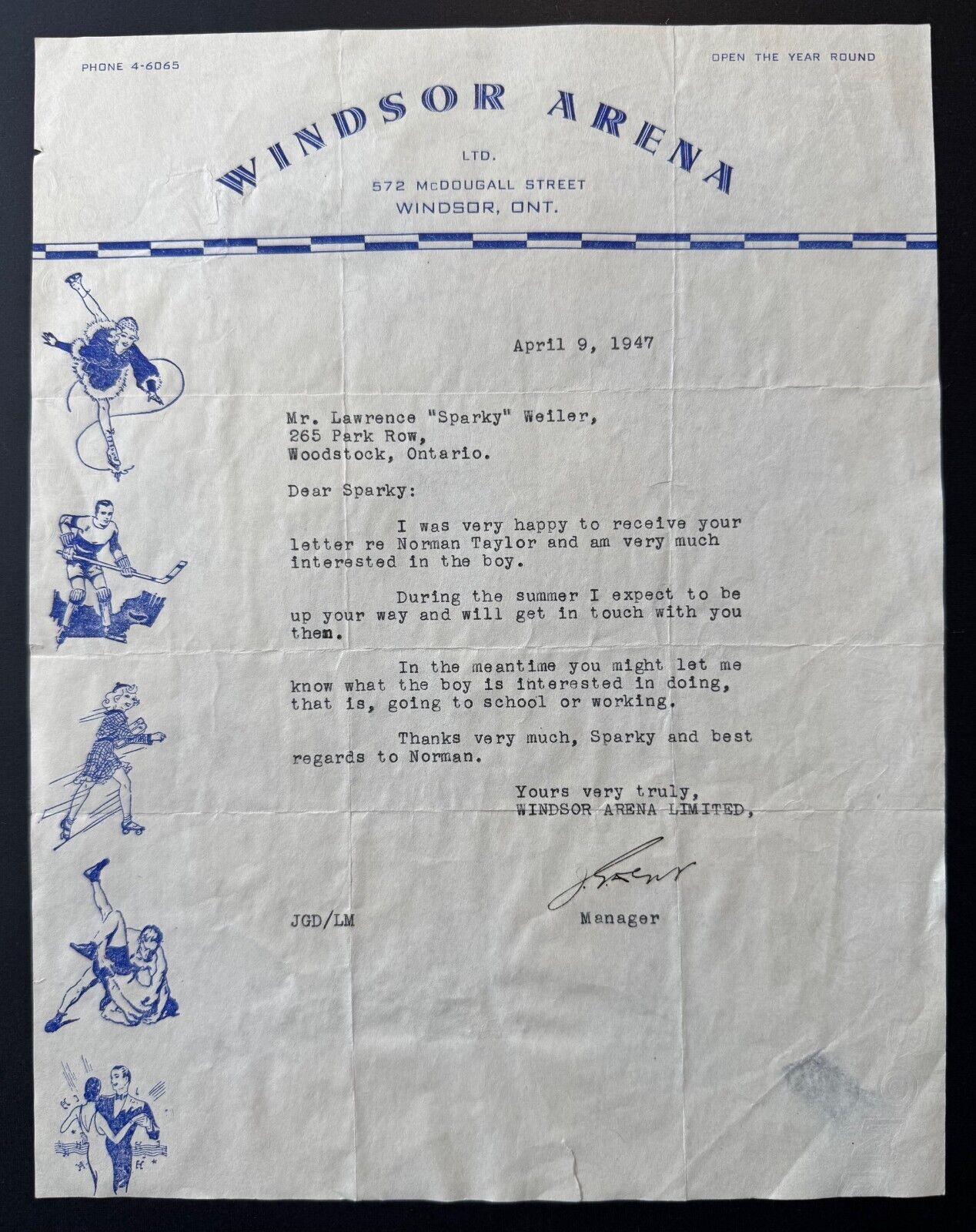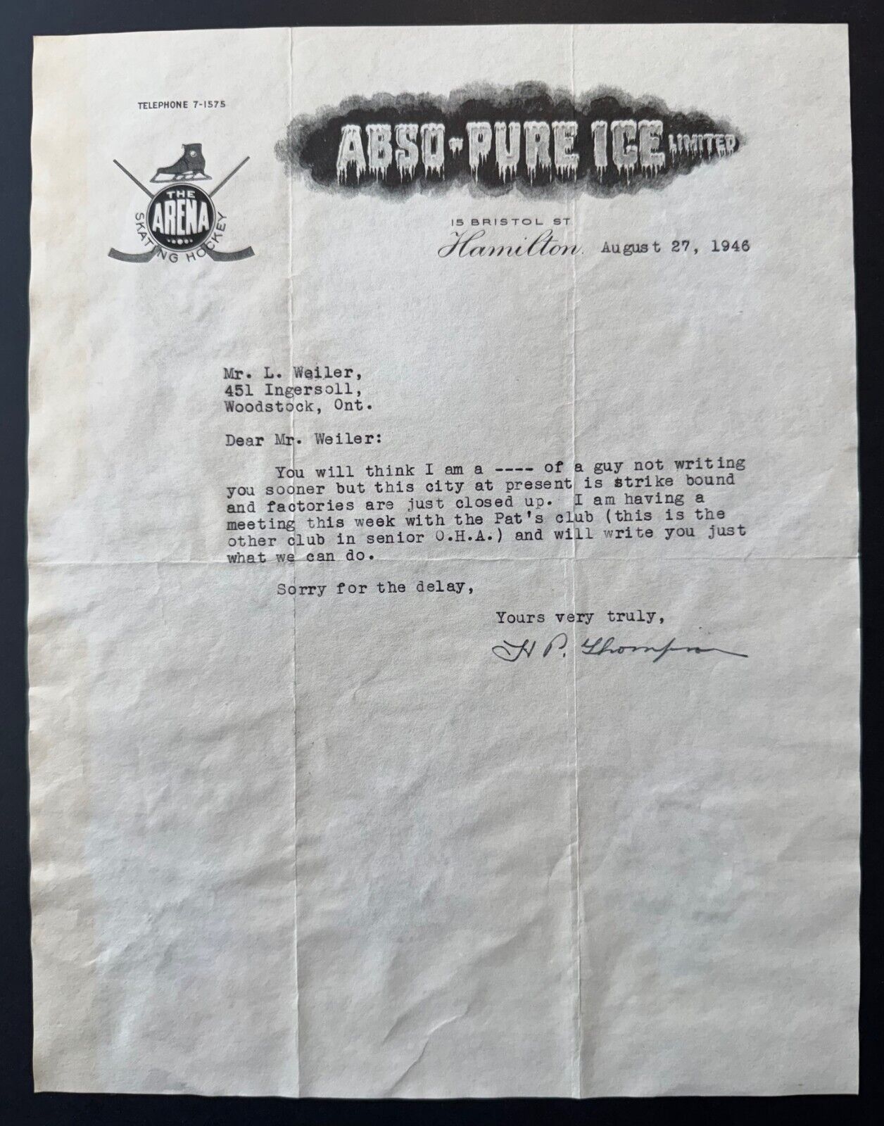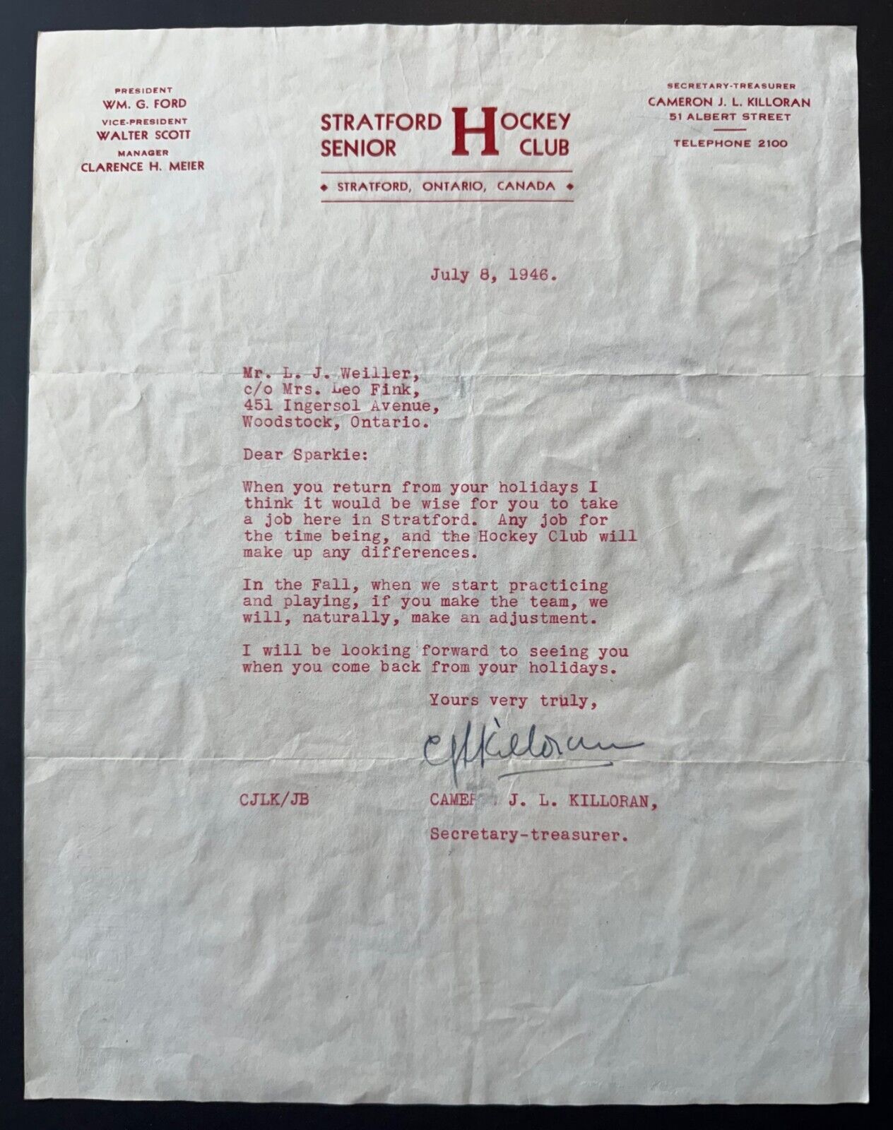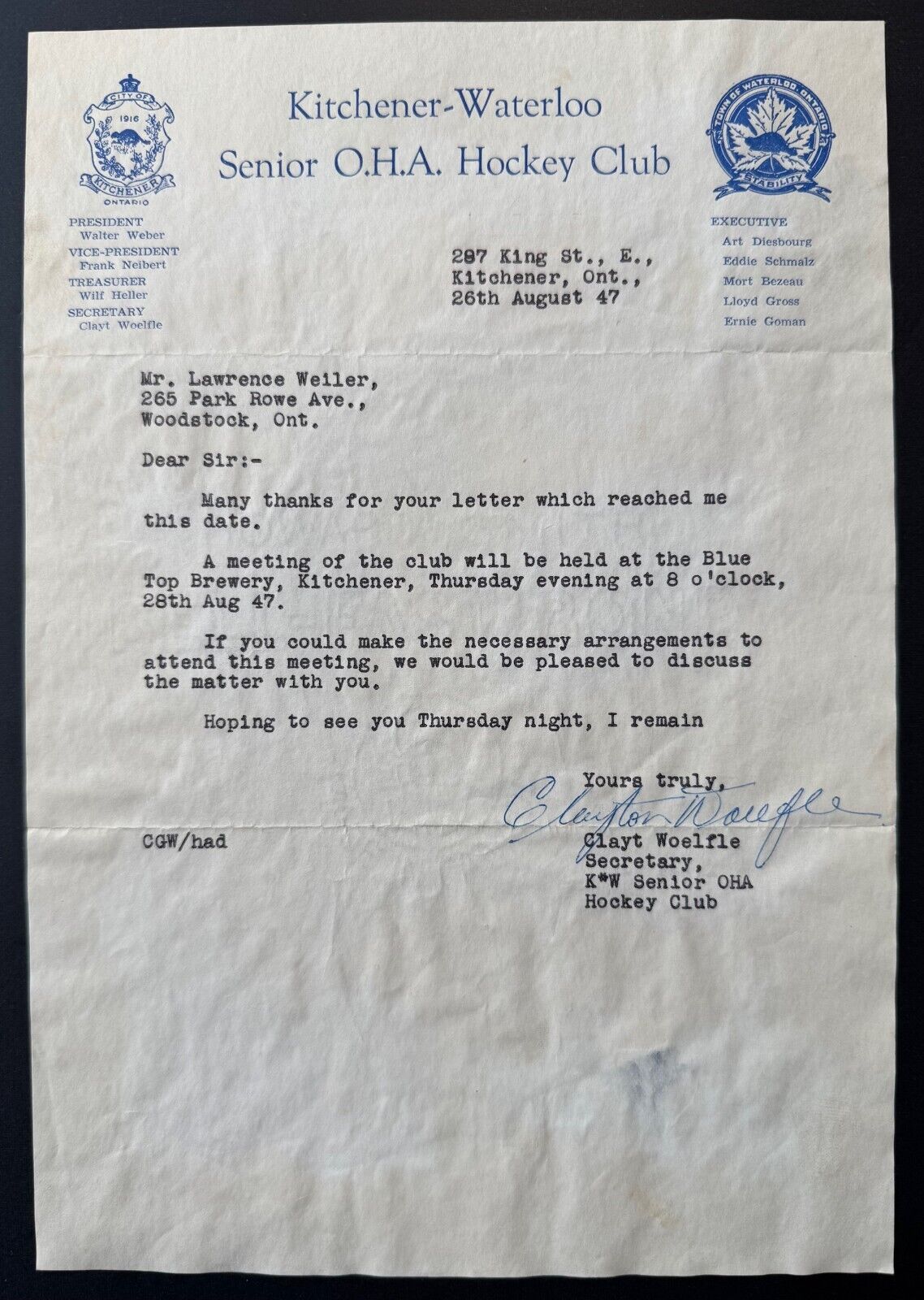 - 1946/47 Senior A Hockey Team Letters To Scout Lawrence “Sparky” Weiler