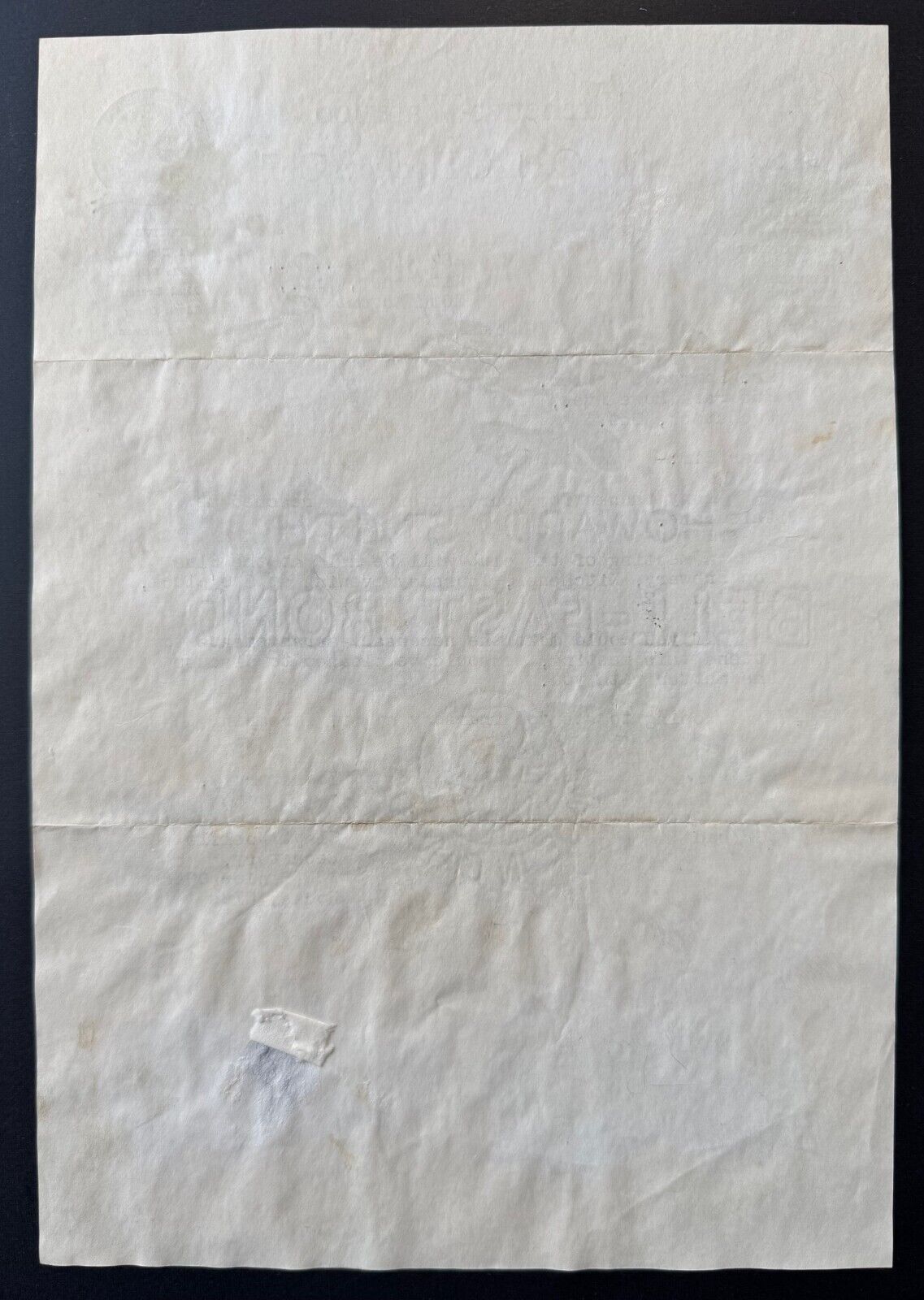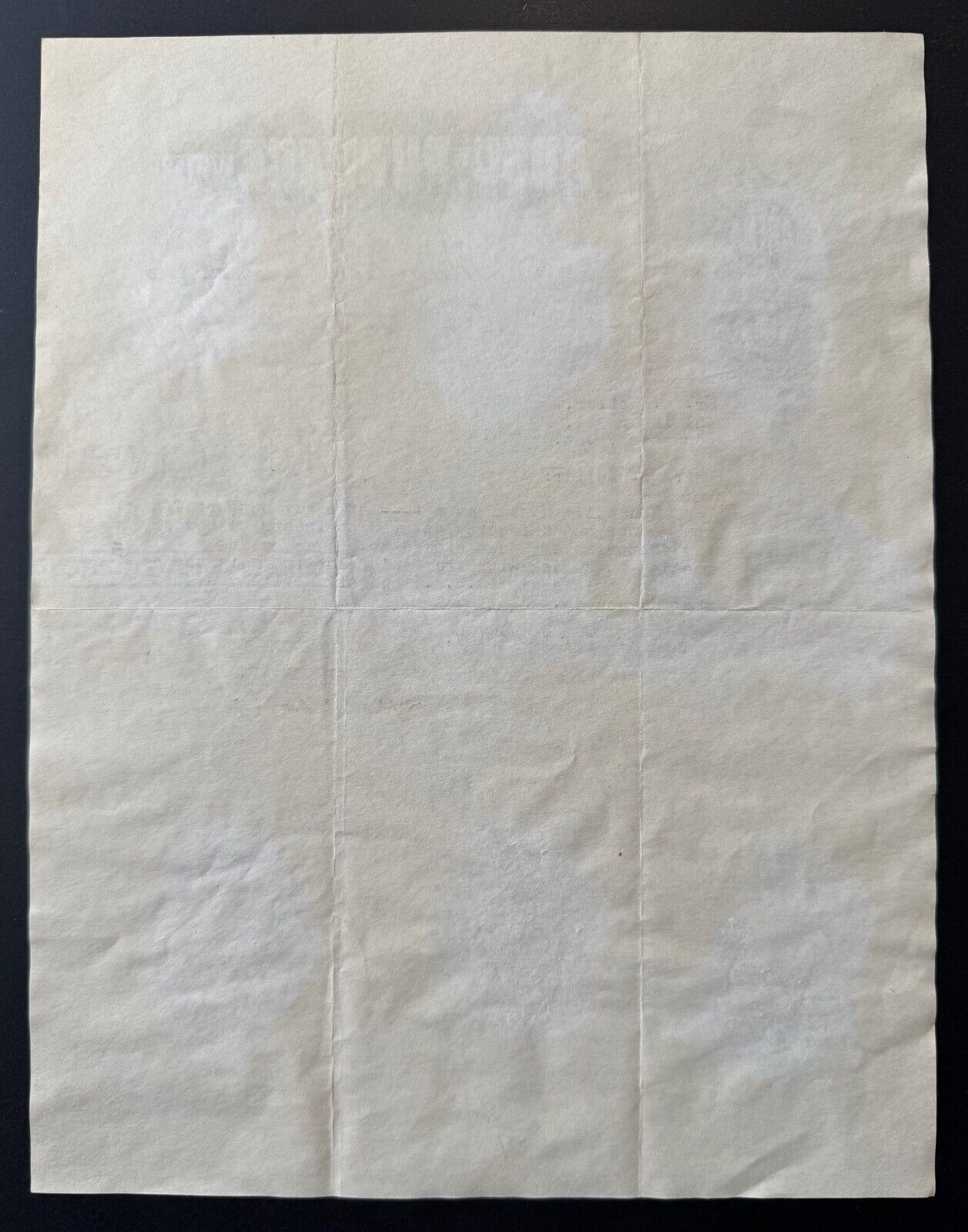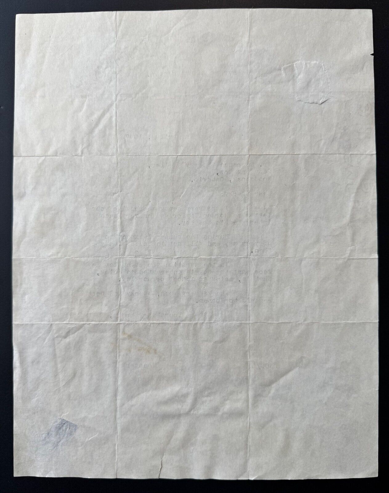 - Excellent condition; some mild foxing present. Some even creasing due to folding. Corners and edges are clean but one letter has a small tear on the bottom edge and a small nick on the left edge
