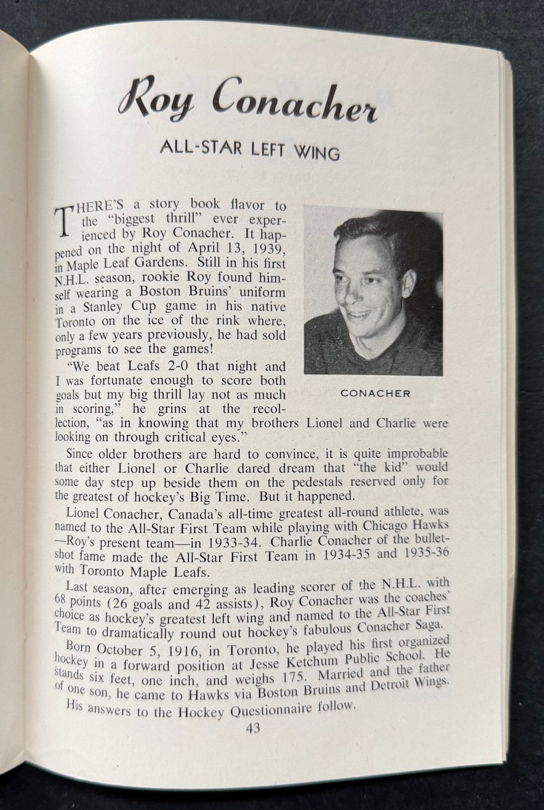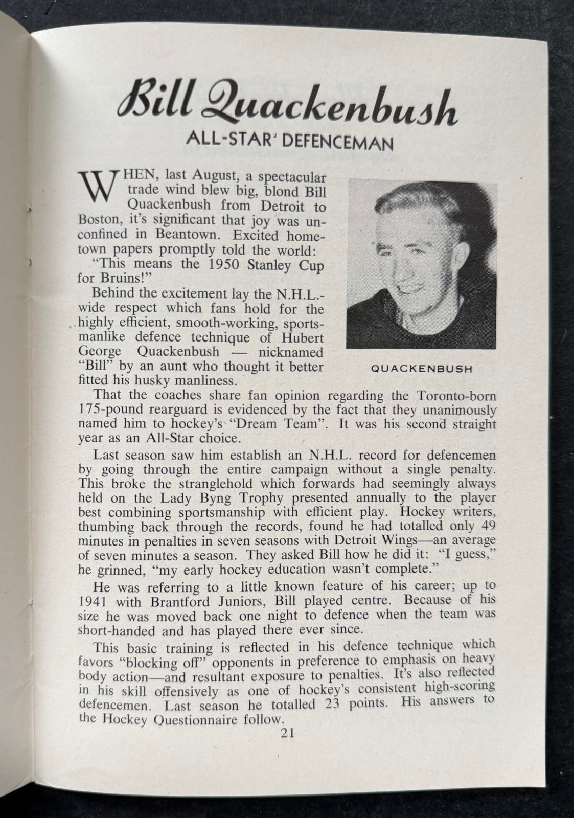 - Bill Quackenbush, Bill Durnan, Jack Stewart, Maurice Richard, Sid Abel and Roy Conacher are featured