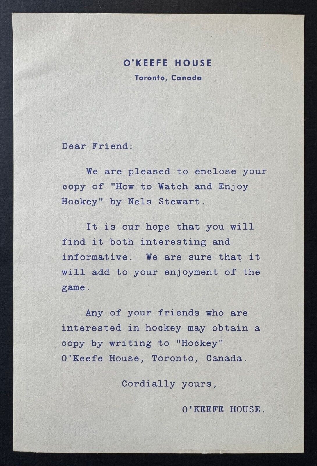 - 1951 O’Keefe Brewery Hockey Booklet By Nels Stewart + Mint Letter Promote Book
