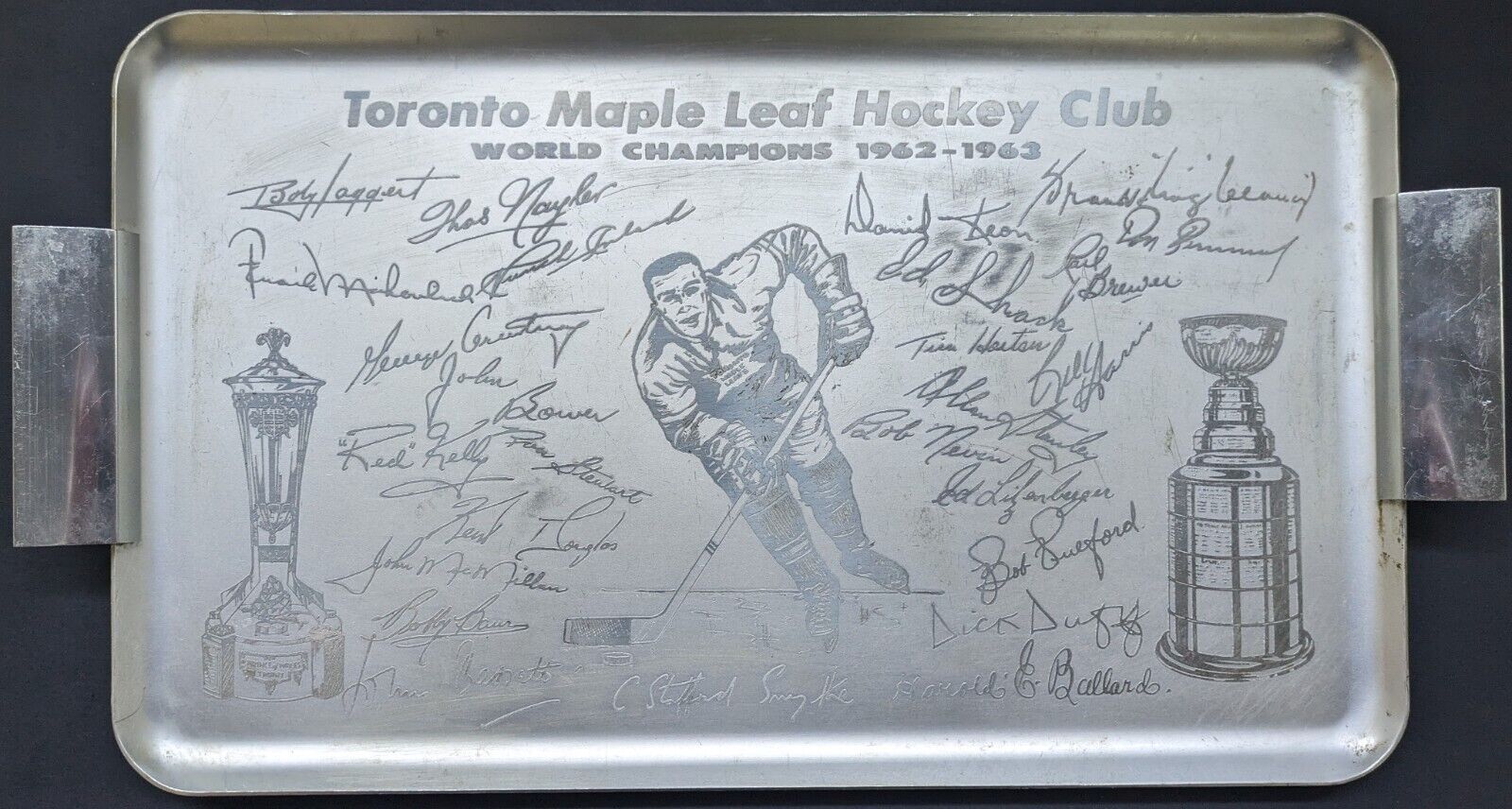 - Metal dinner tray with raised facsimile autographed of the 1962/1963 Stanley Cup winning Toronto Maple Leafs