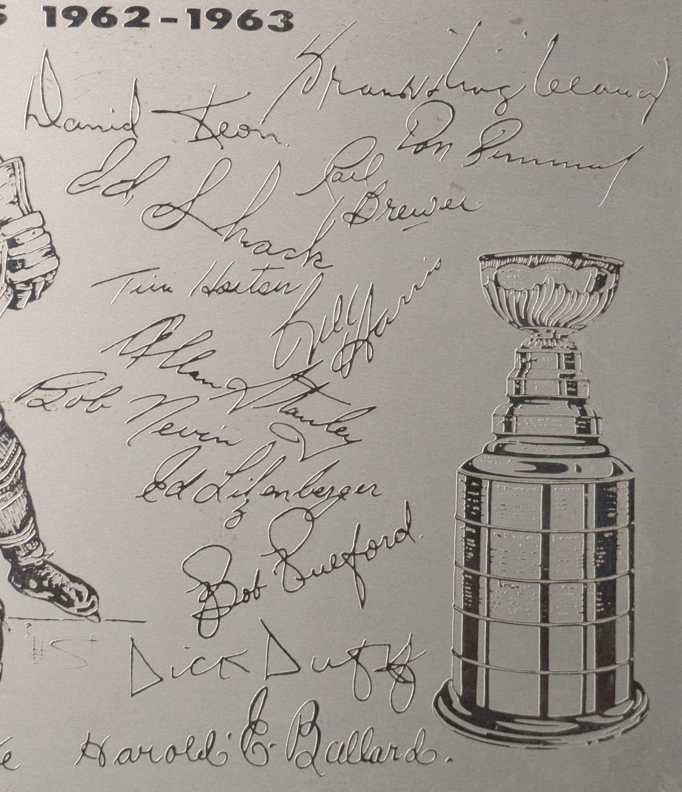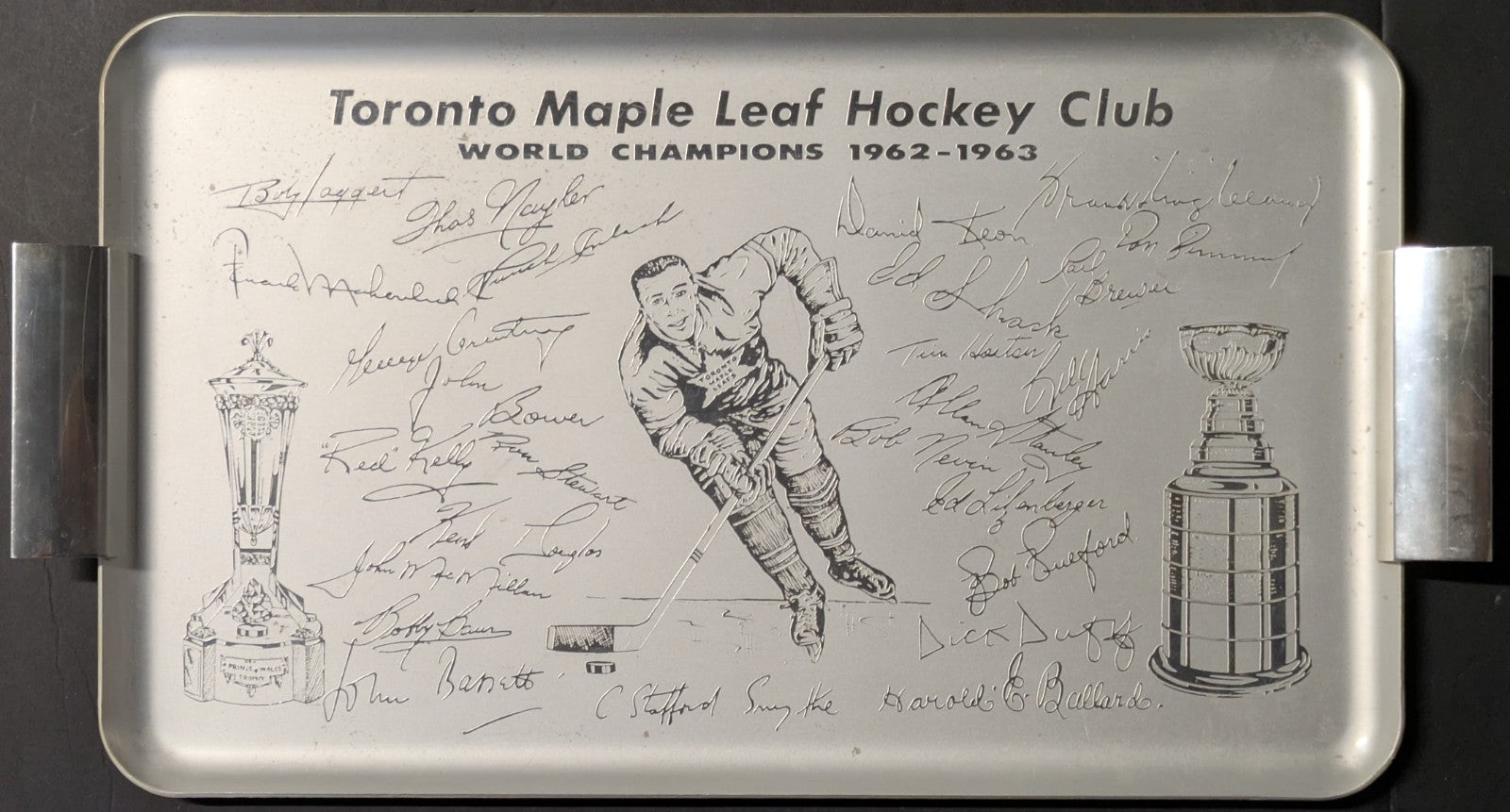 - Metal dinner tray with raised facsimile autographs of the 1962/1963 Stanley Cup winning Toronto Maple Leafs
