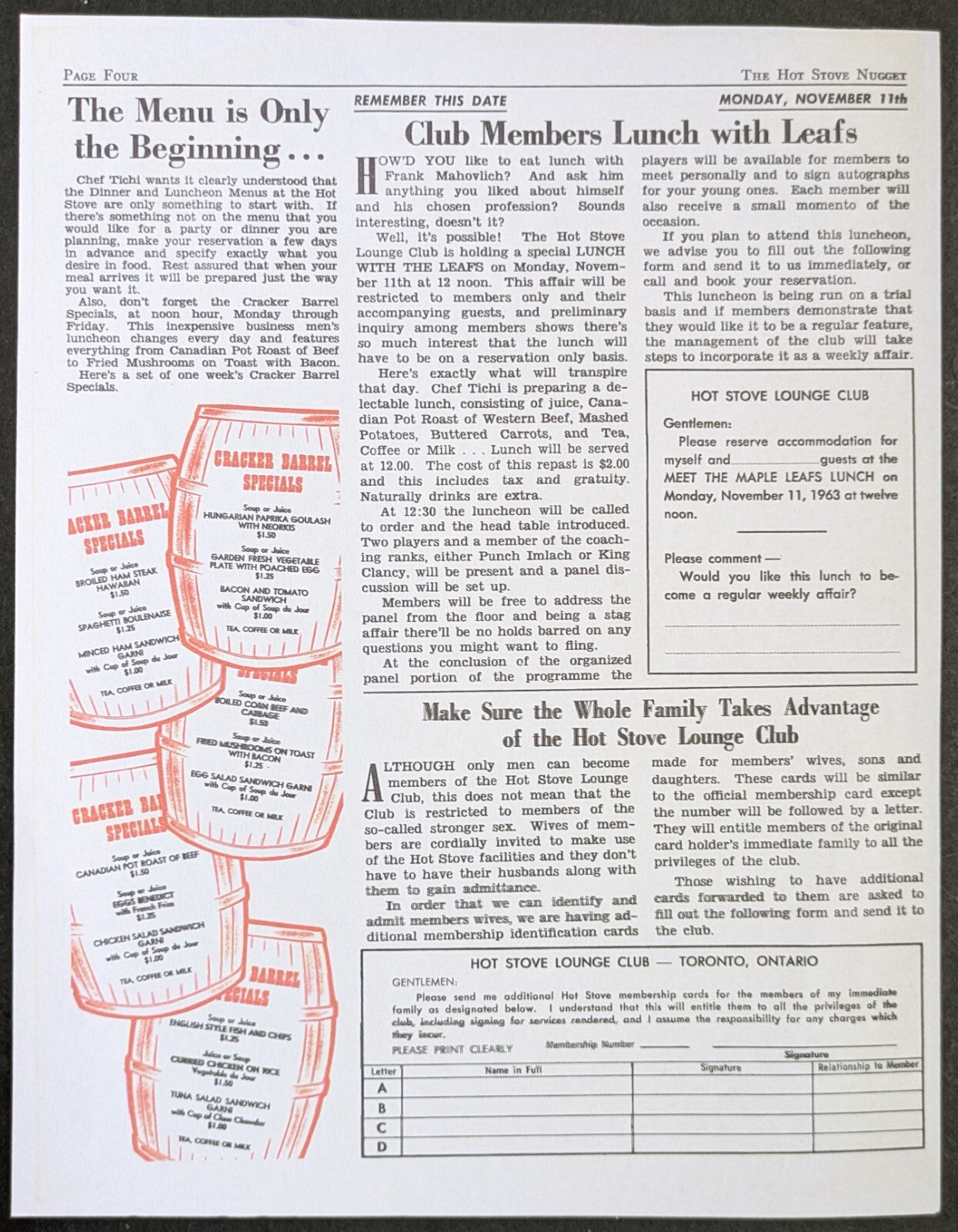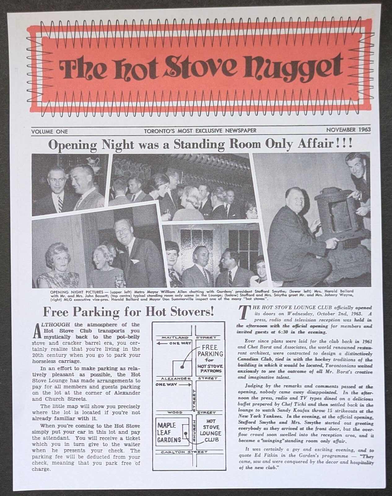 - 1963 Grand Opening Maple Leaf Gardens Hot Stove Lounge Type 1 Photo + Newsletter